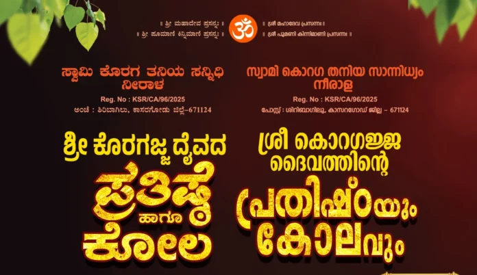 ಶಿರಿಬಾಗಿಲು : ಎ.11-12ರವರೆಗೆ ಸ್ವಾಮಿ ಕೊರಗ ತನಿಯ ಸನ್ನಿದಿ ನೀರಾಳ ಶ್ರೀ ಕೊರಗಜ್ಜ ದೈವದ ಪ್ರತಿಷ್ಠೆ ಹಾಗೂ ಕೋಲ ನಡೆಯಲಿದೆ.