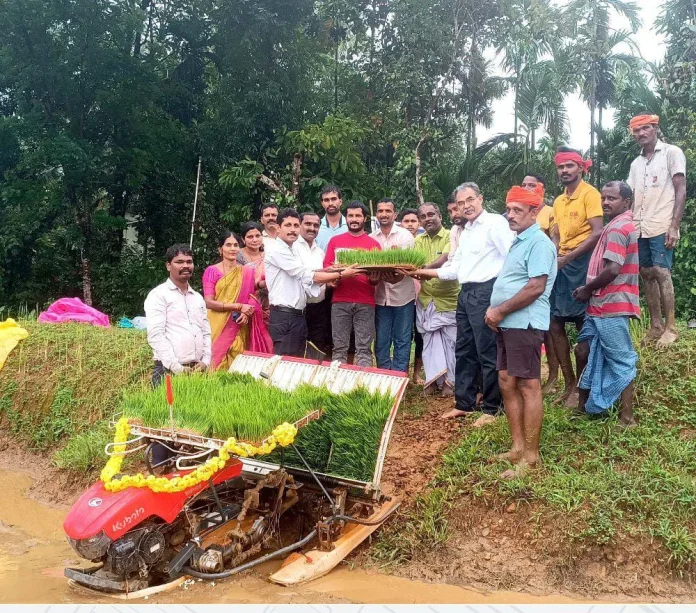 ಅಳದಂಗಡಿ: ಶ್ರೀ ಕ್ಷೇತ್ರ ಧರ್ಮಸ್ಥಳ ಗ್ರಾಮಾಭಿವೃದ್ಧಿ ಯೋಜನೆ bc ಟ್ರಸ್ಟ್ ಗುರುವಾಯನಕೆರೆ ಮುಂಗಾರು ಯಾಂತ್ರಿಕೃತ ಭತ್ತ ಬೇಸಾಯಕ್ಕೆ ಮಾನ್ಯ ಅಳದಂಗಡಿ ಅರಮನೆಯ ಅರಸರಾದ ತಿಮ್ಮಣ್ಣರಸರಾದ ಡಾಕ್ಟರ್ ಪದ್ಮಪ್ರಸಾದ್ ಅಜಿಲರು ಸಸಿ ಮಡಿ ಹಸ್ತಾಂತರ ಮಾಡುವ ಮೂಲಕ ಚಾಲನೆ ನೀಡಿದರು.