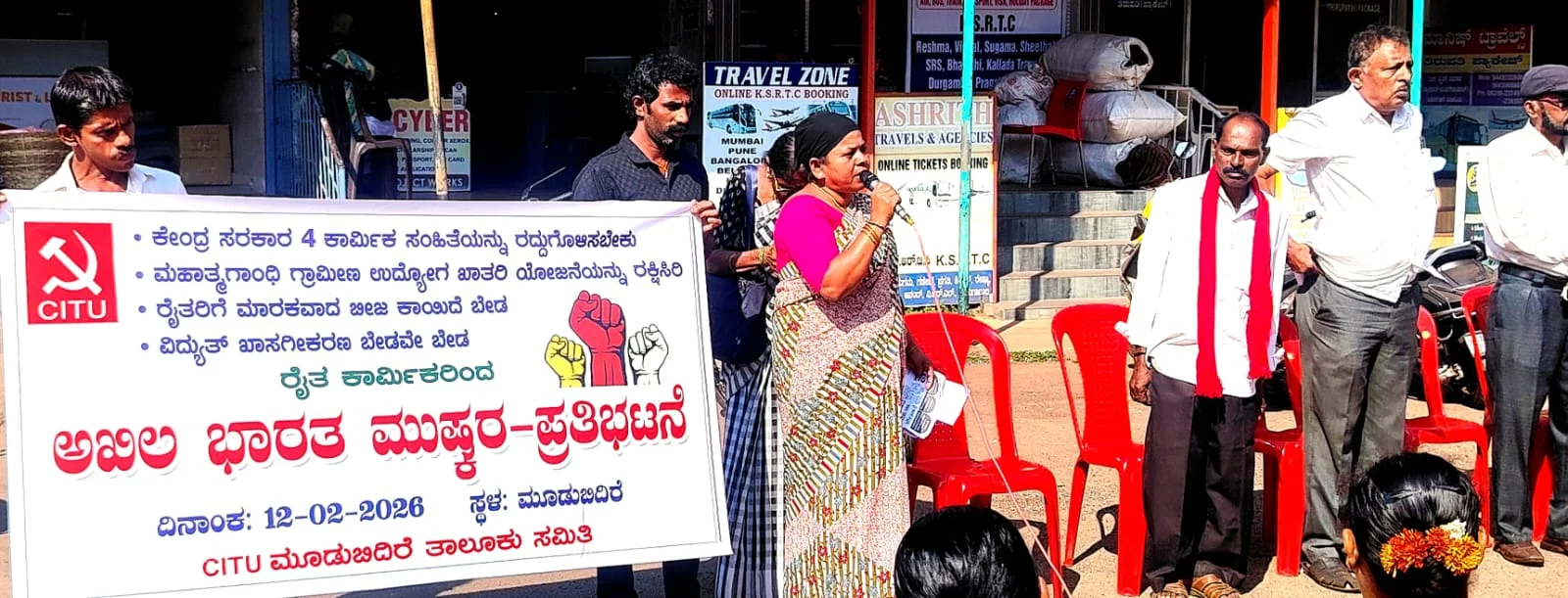 ದೇಶ ವ್ಯಾಪಿ ಹಡೆಯುತ್ತಿರುವ ರೈತ ಕಾರ್ಮಿಕರ ಮಹಾಮಷ್ಕರಕ್ಕೆ ಬೆಂಬಲ ನೀಡುತ್ತಾ ಮೂಡುಬಿದಿರೆಯಲ್ಲಿಯೂ ಪ್ರತಿಭಟನೆಯನ್ನು ಹಮ್ಮಿಕೊಳ್ಳಲಾಗಿತ್ತು. ಪ್ರತಿಭಟನೆಯ ನೇತೃತ್ವವನ್ನು ಕಾರ್ಮಿಕ ಮುಂದಾಳುಗಳಾದ ರಾಧಾ, ರಮಣಿ, ಯಾದವ ಶೆಟ್ಟಿ, ವಸಂತ ಆಚಾರಿ, ಲಕ್ಷ್ಮಿ, ಗಿರಿಜಾ ಹಾಗೂ ಇತರರು ವಹಿಸಿದ್ದರು.
