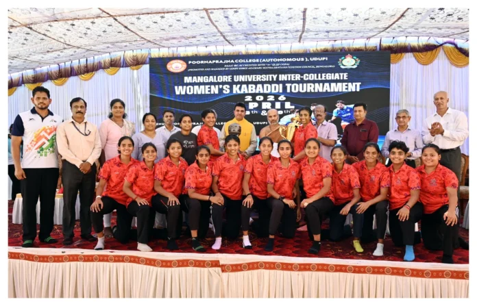 ಉಡುಪಿ : ಮಂಗಳೂರು ವಿಶ್ವವಿದ್ಯಾನಿಲಯದ ದೈಹಿಕ ಶಿಕ್ಷಣ ವಿಭಾಗ ಹಾಗೂ ಉಡುಪಿಯ ಪೂರ್ಣಪ್ರಜ್ಞ ಸ್ವಾಯತ್ತ ಕಾಲೇಜಿನ ಸಹಯೋಗದಲ್ಲಿ ಆಯೋಜಿಸಲಾಗಿದ್ದ ಅಂತರ ಕಾಲೇಜು ಮಹಿಳಾ ಕಬಡ್ಡಿ ಪಂದ್ಯಾವಳಿಯ ಸಮಾರೋಪ ಹಾಗೂ ಬಹುಮಾನ ವಿತರಣಾ ಸಮಾರಂಭವು ಶುಕ್ರವಾರ ಕಾಲೇಜಿನ ಕ್ರೀಡಾಂಗಣದಲ್ಲಿ ನೆರವೇರಿತು.