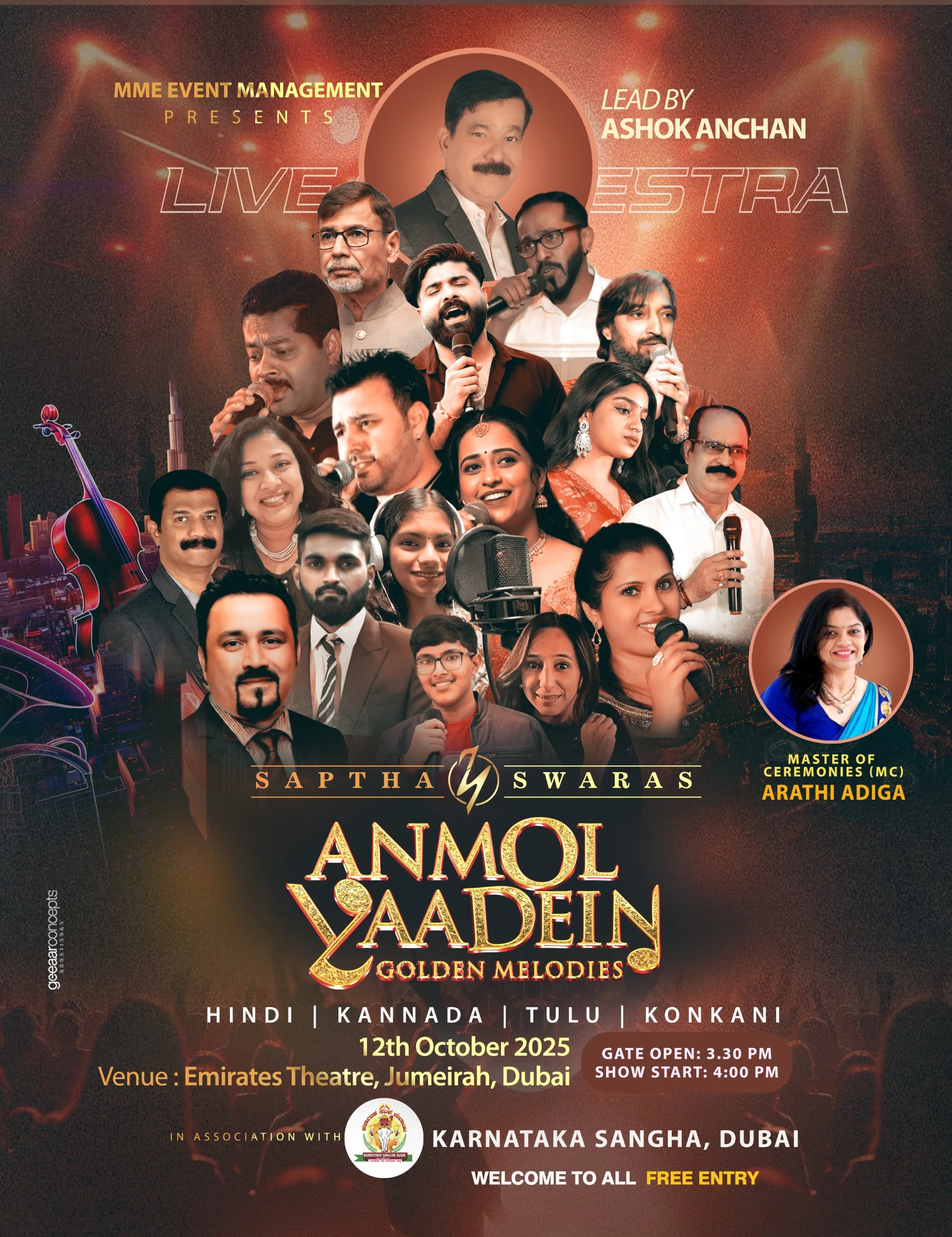 ಅಶೋಕ್ ಅಂಚನ್ ಅವರಿಂದ ಆಯೋಜಿಸಲ್ಪಟ್ಟ ಈ ಕಾರ್ಯಕ್ರಮವು ದುಬೈಯಲ್ಲಿ ಇರುವ ಭಾರತೀಯ ಸಮುದಾಯದ ಮನಸ್ಸು ಗೆಲ್ಲುವ ಪ್ರಯತ್ನವಾಗಿದ್ದು, ಎಲ್ಲರಿಗೂ ಉಚಿತ ಪ್ರವೇಶ ಕಲ್ಪಿಸಲಾಗಿದೆ.
