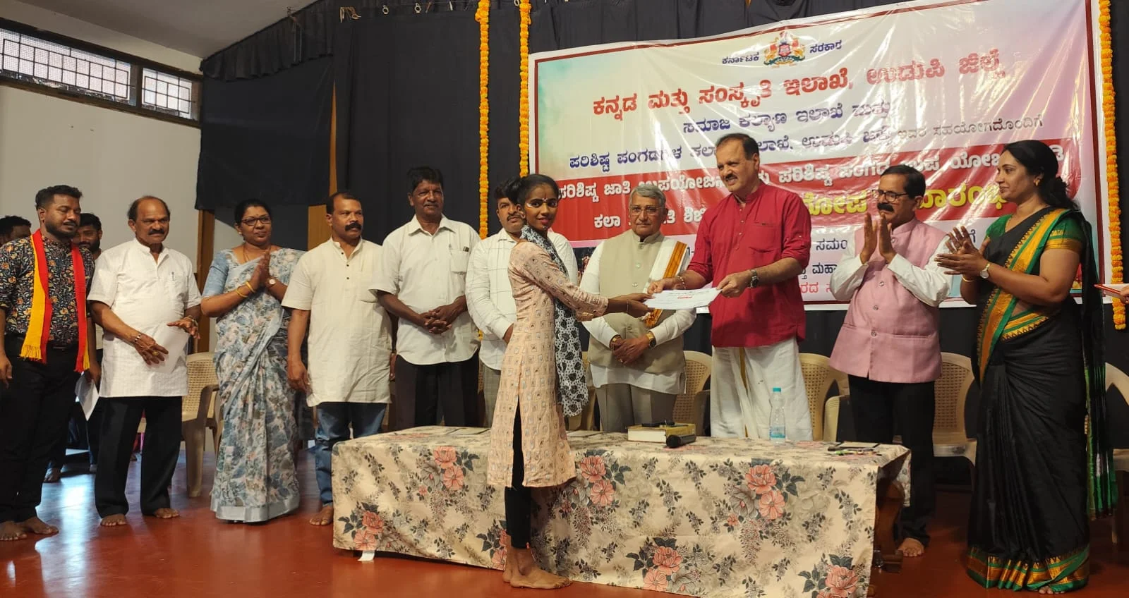 ಕನ್ನಡ ಮತ್ತು ಸಂಸ್ಕೃತಿ ಇಲಾಖೆಯ ಸಹಾಯಕ ನಿರ್ದೇಶಕಿ ಪೂರ್ಣಿಮಾ ಪ್ರಾಸ್ತಾವಿಕ ಮಾತುಗಳನ್ನಾಡಿ, ಪರಿಶಿಷ್ಟ ಜಾತಿ ಮತ್ತು ಪಂಗಡದ ವಿದ್ಯಾರ್ಥಿನಿಯರಿಗೆ ಕಲಾ ತರಬೇತಿ ನೀಡಲು ಜಿಲ್ಲೆಯ 2 ಹಾಸ್ಟೇಲುಗಳ ವಿದ್ಯಾರ್ಥಿಗಳನ್ನು ಆಯ್ಕೆ ಮಾಡಿ, ಕಳೆದ ಜುಲೈ ತಿಂಗಳಿoದ ತರಬೇತಿ ನೀಡಲಾಗುತ್ತಿದೆ ಎಂದರು. ಕಾರ್ಯಕ್ರಮದಲ್ಲಿ ವಿದ್ಯಾರ್ಥಿನಿಯರಿಗೆ ತರಬೇತಿ ನೀಡಿದ ಕಲಾಗುರುಗಳಾದ ರಮೇಶ್ ಕಲ್ಮಾಡಿ ಹಾಗೂ ಗಣೇಶ್ ಬಾರ್ಕೂರು ಅವರನ್ನು ಗೌರವಿಸಲಾಯಿತು.
