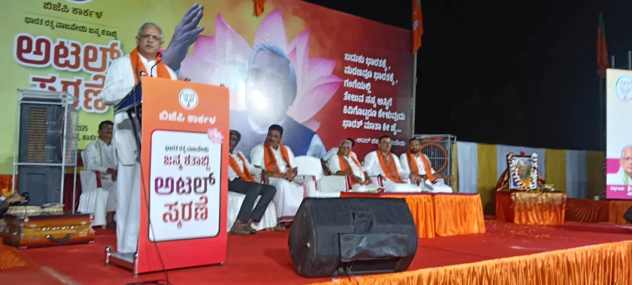 ಬಿಜೆಪಿ ಕಾರ್ಕಳದ ವತಿಯಿಂದ ಕಾರ್ಕಳ ಕುಕ್ಕುಂದೂರು ಮೈದಾನದಲ್ಲಿ ನಡೆದ ಭಾರತ ರತ್ನ ವಾಜಪೇಯಿ ಜನ್ಮ ಶತಾಬ್ದಿ ಅಟಲ್ ಸ್ಮರಣೆ ಕಾರ್ಯಕ್ರಮದಲ್ಲಿ ದಿಕ್ಸೂಚಿ ಮಾತುಗಳನ್ನಾಡಿದರು.