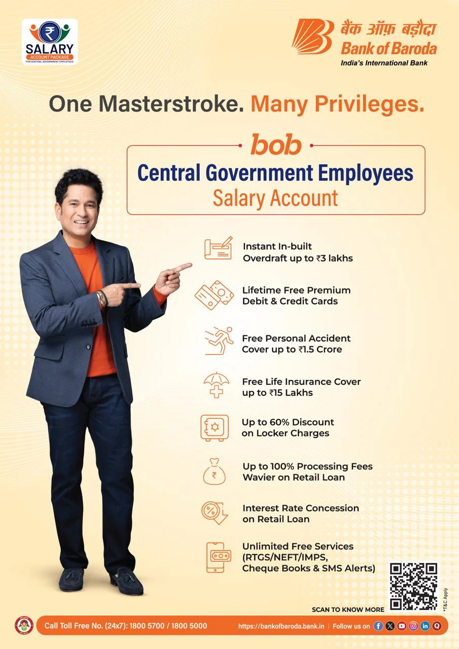 ಮಂಗಳೂರು, ಜನವರಿ : ಭಾರತದ ಪ್ರಮುಖ ಸಾರ್ವಜನಿಕ ವಲಯದ ಬ್ಯಾಂಕ್ಗಳಲ್ಲೊಂದಾದ ಬ್ಯಾಂಕ್ ಆಫ್ ಬರೋಡಾ ಕೇಂದ್ರ ಸರ್ಕಾರದ ಉದ್ಯೋಗಿಗಳಿಗಾಗಿ ವಿಶೇಷ ಸ್ಯಾಲರಿ ಖಾತೆ ಪ್ಯಾಕೇಜ್ ಅನ್ನು ಪರಿಚಯಿಸಿದೆ. ಹಣಕಾಸು ಸೇವೆಗಳ ಇಲಾಖೆ (Department of Financial Services – DFS) ಉಪಕ್ರಮದ ಭಾಗವಾಗಿ ‘ಬಾಬ್ ಸೆಂಟ್ರಲ್ ಗವರ್ನ್ಮೆಂಟ್ ಎಂಪ್ಲಾಯೀಸ್ ಸ್ಯಾಲರಿ ಅಕೌಂಟ್’ ಅನ್ನು ಆರಂಭಿಸಲಾಗಿದೆ.