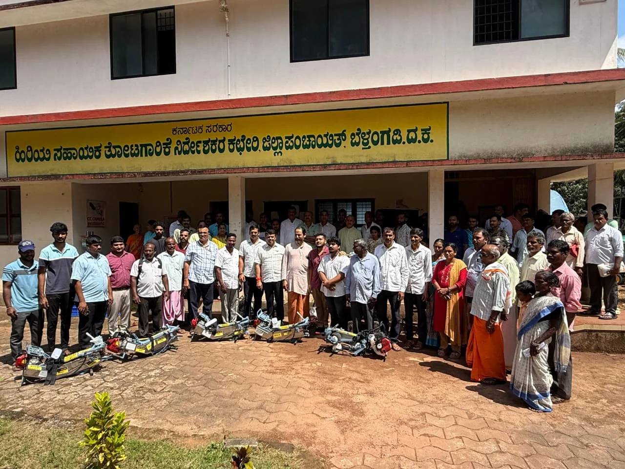 2025-2026ನೇ ಸಾಲಿನ ಕೇಂದ್ರ ಪುರಸ್ಕೃತ ಕೃಷಿ ಯಾಂತ್ರೀಕರಣ ಉಪ ಅಭಿಯಾನ (SMAM) ಯೋಜನೆಯಡಿ ತೋಟಗಾರಿಕೆ ಇಲಾಖೆ ಬೆಳ್ತಂಗಡಿ ವತಿಯಿಂದ ವಿವಿಧ ಕೃಷಿ ಯಂತ್ರೋಪಕರಣಗಳ ಪ್ರಾತ್ಯಕ್ಷತೆ ಹಾಗೂ ರೂ.75000 ಸಹಾಯಧನದಲ್ಲಿ ತಾಲೂಕಿನ 56 ಜನ ಅರ್ಹ ಫಲಾನುಭವಿಗಳಿಗೆ ಮೆನೆಬ್ಸ್ ಇಂಜಿನಿಯರಿಂಗ್ ಸಲ್ಯೂಷನ್ಸ್ ಶಿವಮೊಗ್ಗ ಕಂಪೆನಿಯವರು ತಯಾರಿಸಿದ ಅಡಿಕೆ ಮರ ಹತ್ತುವ ಯಂತ್ರವನ್ನು ಶಾಸಕರಾದ ಹರೀಶ್ ಪೂಂಜರವರು ವಿತರಿಸಿದರು.