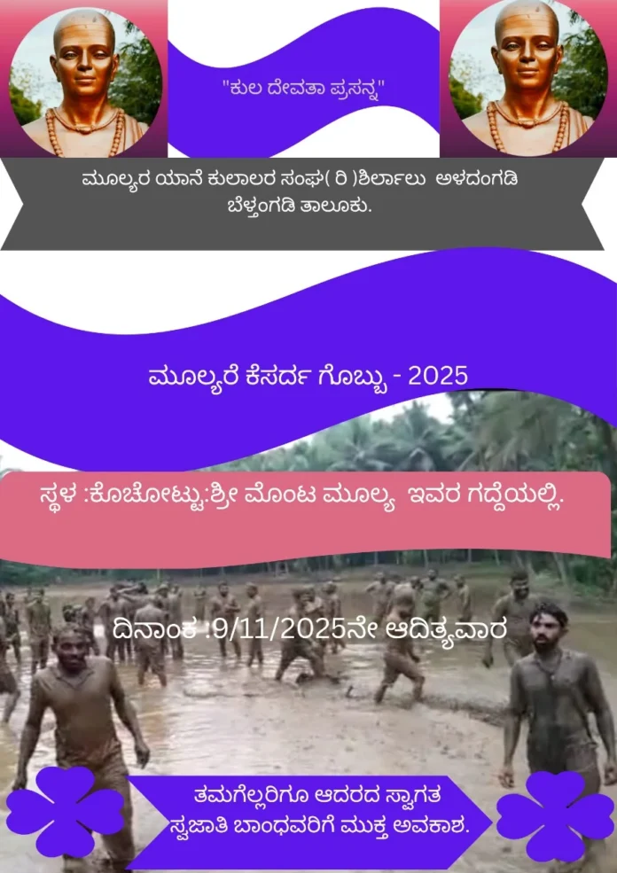 Uncategorizedಬೆಳ್ತಂಗಡಿ: ನ.9ರಂದು ಮೂಲ್ಯರ ಕೆಸರ್ದ ಗೊಬ್ಬು- 2025By TNVOffice - October 25, 20250146FacebookTwitterPinterestWhatsApp ಬೆಳ್ತಂಗಡಿ: ಮೂಲ್ಯರ ಯಾನೆ ಕುಲಾಲರ ಸಂಘ(ರಿ.) ಶಿರ್ಲಾಲು ಅಳದಂಗಡಿ ವತಿಯಿಂದ ಮೂಲ್ಯರ ಕೆಸರ್ದ ಗೊಬ್ಬು- 2025 ಕಾರ್ಯಕ್ರಮವು ಕೊಚೋಟ್ಟು ಶ್ರೀ ಮೋಂಟ ಮೂಲ್ಯ ಇವರ ಗದ್ದೆಯಲ್ಲಿ ನವೆಂಬರ್ 9 ರಂದು ನಡೆಯಲಿದೆ.