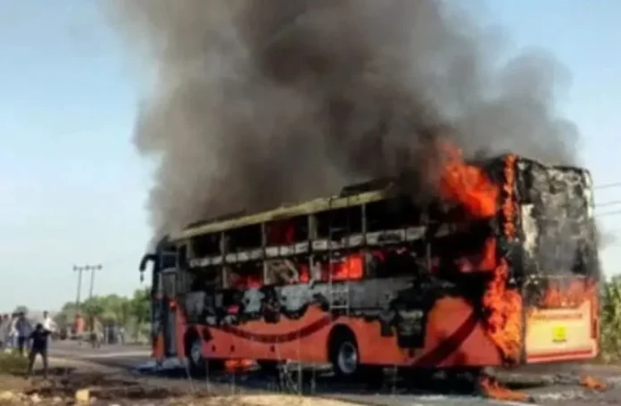 ಜೈಸಲ್ಮೇರ್’ನಲ್ಲಿ ಬಸ್’ಗೆ ಬೆಂಕಿ : 20 ಮಂದಿ ಸಜೀವ ದಹನ