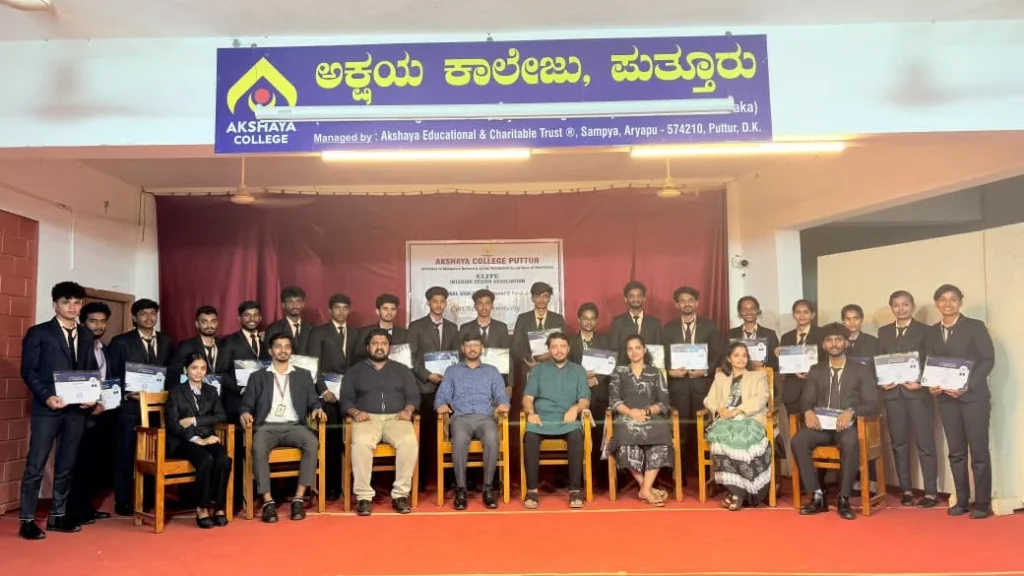 ಅಕ್ಷಯ ಕಾಲೇಜಿನ ಇಂಟೀರಿಯರ್ ಡಿಸೈನ್ ವಿಭಾಗದ ವಿದ್ಯರ್ಥಿಗಳಿಗೆ ಎಲೈಟ್ ಅಸೋಸಿಯೇಷನ್ ಹಾಗೂ ಭಾರತ್ ಅಕಾಡೆಮಿ ಆಫ್ ಲಿಬರಲ್ ಎಜುಕೇಶನ್ ( ಬೇಸ್), ಮಂಗಳೂರು ಜಂಟಿಯಾಗಿ ಆರಂಭಿಸಿದ ತ್ರೀಡಿಎಸ್ ಮ್ಯಾಕ್ಸ್ ಮತ್ತು ತ್ರೀಡಿ ರೆಂಡರಿಂಗ್ ಎಂಬ ವಿಷಯದಲ್ಲಿ ನಡೆದ ಕರ್ಯಗಾರದ ಪ್ರಮಾಣ ಪತ್ರ ವಿತರಣಾ ಸಮಾರಂಭ ಕಾಲೇಜಿನ ಸಭಾಂಗಣದಲ್ಲಿ ನಡೆಯಿತು.