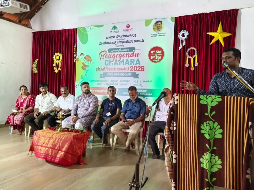 ಉಡುಪಿ: ಚಾಮರ ಫೌಂಡೇಷನ್ (ರಿ.) ಮತ್ತು ಉಡುಪಿಯ ರೊಬೋಸಾಫ್ಟ್ ಟೆಕ್ನಾಲಜಿಸ್ ಪ್ರೈವೇಟ್ ಲಿಮಿಟೆಡ್ ಸಂಯುಕ್ತವಾಗಿ ಬೇಸಿಗೆಗೊಂದು ಚಾಮರ ಉಚಿತ ಬೇಸಿಗೆ ಶಿಬಿರ 2026ರ 6ನೇ ಆವೃತ್ತಿಯನ್ನು ಇಂದು ಉಡುಪಿ ಜಿಲ್ಲೆಯ ಕೆಮ್ಮಣ್ಣು ಸರಕಾರಿ ಕಾಲೇಜ್ (ಜಿ.ಪಿ.ಯು.ಸಿ.) ಹಾಲ್ನಲ್ಲಿ ಉದ್ಘಾಟಿಸಿದೆ.