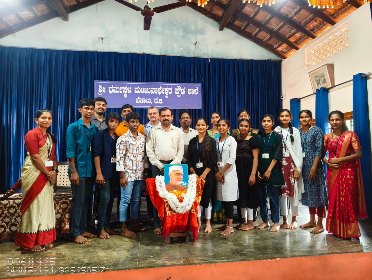 ಬೆಳಾಲು ಶ್ರೀ ಧ.ಮಂ. ಅನುದಾನಿತ ಪ್ರೌಢ ಶಾಲೆಯಲ್ಲಿ ನ.14 ರಂದು ಮಕ್ಕಳ ದಿನಾಚರಣೆ ಆಚರಿಸಲಾಯಿತು. ನೆಹರೂ ಅವರ ಭಾವಚಿತ್ರಕ್ಕೆ ಪುಷ್ಪನಮನ ಸಲ್ಲಿಸಲಾಯಿತು.