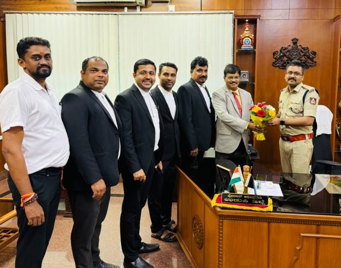 ಉಡುಪಿ ಜಿಲ್ಲೆಯ ನೂತನ ಪೊಲೀಸ್ ವರಿಷ್ಠಾಧಿಕಾರಿಗಳಾಗಿ ಇತ್ತೀಚೆಗೆ ಅಧಿಕಾರ ವಹಿಸಿಕೊಂಡ ಶ್ರೀ ಹರಿರಾಮ್ ಶಂಕರ್ ಅವರನ್ನು ಉಡುಪಿ ವಕೀಲರ ಸಂಘದ ಅಧ್ಯಕ್ಷ ಶ್ರೀ ರೆನೋಲ್ಡ್ ಪ್ರವೀಣ್ ಕುಮಾರ್ ನೇತೃತ್ವದ ನಿಯೋಗವು ಇಂದು ಜೂನ್ ತಾ. 23ರಂದು ಭೇಟಿಯಾಗಿ ಅವರಿಗೆ ಪುಷ್ಪಗುಚ್ಛ ನೀಡಿ ಅಭಿನಂದಿಸಿತು. ಜಿಲ್ಲೆಯ ಕಾನೂನು ಸುವ್ಯವಸ್ಥೆ ಮತ್ತು ನಗರದ ಸಂಚಾರ ವ್ಯವಸ್ಥೆ ಕಾಪಾಡಲು ವಿಶೇಷ ಆದ್ಯತೆ ನೀಡುವಂತೆ ಹಾಗೂ ಉಡುಪಿ ನಗರ ಪೊಲೀಸ್ ಠಾಣೆಯು ಬಹಳ ಇಕ್ಕಟ್ಟಾಗಿರುವುದರಿಂದ ಆ ಠಾಣೆಯ ಮೇಲ್ಭಾಗದಲ್ಲಿರುವ ಮಹಿಳಾ ಠಾಣೆಯನ್ನು ಬೇರೆಡೆ ಸ್ಥಳಾಂತರಿಸುವಂತೆ ವಿನಂತಿಸಲಾಯಿತು. ಮತ್ತು ವಕೀಲರ ಸಂಘಕ್ಕೆ ಭೇಟಿ ನೀಡಿ “ಸಂವಾದ ಕಾರ್ಯಕ್ರಮ”ದಲ್ಲಿ ಭಾಗವಹಿಸುವಂತೆಯೂ ಆಹ್ವಾನಿಸಲಾಯಿತು. ಈ ಬಗ್ಗೆ ಸಕಾರಾತ್ಮಕವಾಗಿ ಸ್ಪಂದಿಸಿದ ಎಸ್.ಪಿ.ಯವರು ಅತಿ ಶೀಘ್ರ ವಕೀಲರ ಸಂಘಕ್ಕೆ ಭೇಟಿ ನೀಡುವುದಾಗಿ ಭರವಸೆ ನೀಡಿದರು. ನಿಯೋಗದಲ್ಲಿ ವಕೀಲರ ಸಂಘದ ಪದಾಧಿಕಾರಿಗಳಾದ ಶ್ರೀ ರಾಜೇಶ್ ಎ.ಆರ್., ಶ್ರೀ ಬೈಲೂರು ರವೀಂದ್ರ ದೇವಾಡಿಗ, ಶ್ರೀ ಸಂತೋಷ್ ಮೂಡುಬೆಳ್ಳೆ, ಶ್ರೀ ಜಯಕೃಷ್ಣ ಆಳ್ವ ಮತ್ತು ಶ್ರೀ ಆರೂರು ಸುಕೇಶ್ ಶೆಟ್ಟಿ ಉಪಸ್ಥಿತರಿದ್ದರು.