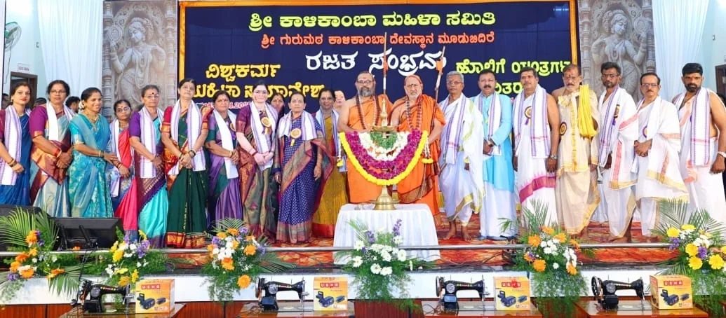 ಮೂಡುಬಿದಿರೆ: ಅವಿಭಜಿತ ದ ಕ ಜಿಲ್ಲಾ ಮಟ್ಟದ ವಿಶ್ವಕರ್ಮ ಮಹಿಳಾ ಸಮಾವೇಶ ಮೂಡುಬಿದಿರೆ ಗುರುಮಠ ಕಾಳಿಕಾಂಬಾ ದೇವಸ್ಥಾನದಲ್ಲಿ ನಡೆಯಿತು. ಆನೆಗುಂದಿ ಮಹಾಸಂಸ್ಥಾನ ಸರಸ್ವತಿ ಪೀಠಾಧೀಶ್ವರರು ಹಾಗೂ ಅಲೆಮಾದನಹಳ್ಳಿ ವಿಶ್ವ ಬ್ರಾಹ್ಮಣ ಮಹಾ ಸಂಸ್ಥಾನ ಶಿವಸುಜ್ಞಾನ ತೀರ್ಥ ಸ್ವಾಮೀಜಿಗಳು ದೀಪ ಪ್ರಜ್ವಲನೆಗೆ ಗೈದರು. ಅವರ ಉಪಸ್ಥಿತಿಯಲ್ಲಿ ಸುಮಾರು 30 ಮಂದಿ ಮಹಿಳೆಯರಿಗೆ ಹೊಲಿಗೆ ಯಂತ್ರವನ್ನು ವಿತರಿಸಲಾಯಿತು.