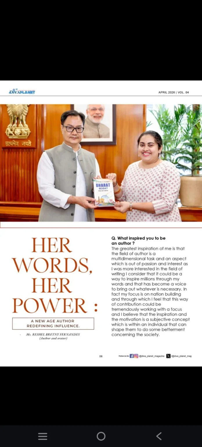 ಡಿವ ಪ್ಲಾನೆಟ್ ಪತ್ರಿಕೆಯಿಂದ ಯುವ ಲೇಖಕಿ ರಿಶಲ್ ಬ್ರಿಟ್ನಿ ಫೆರ್ನಾಂಡಿಸ್ ಗೆ HER WORDS HER POWER ಸಂಧರ್ಶನ