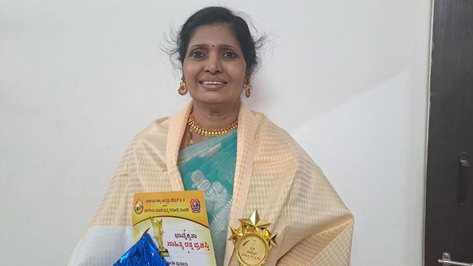 ಡಾ. ಶಾಂತಾ ಪುತ್ತೂರುರವರಿಗೆ ಭಾವೈಕ್ಯತಾ ಸಾಹಿತ್ಯ ರತ್ನ ರಾಜ್ಯ ಪ್ರಶಸ್ತಿ 2025 ಗೌರವ ದಿನಾಂಕ 14.9.2025 ರಂದು ದೇರಳಕಟ್ಟೆ ನವಾಝ್ ಸಭಾಂಗಣದಲ್ಲಿ ಕರ್ನಾಟಕ ರಾಜ್ಯ ಭಾವೈಕ್ಯ ಪರಿಷತ್ ದ.ಕ. ಮತ್ತು ಭಾರತೀಯ ಮಾದಕ ದ್ರವ್ಯ ವಿರೋಧಿ ಮಂಡಳಿ ಆಶ್ರಯದಲ್ಲಿ ಜರುಗಿದ ರಾಜ್ಯ ಮಟ್ಟದ ಚುಟುಕು ಕವಿಗೋಷ್ಠಿ ಹಾಗೂ ಭಾವೈಕ್ಯತಾ ಸಾಹಿತ್ಯ ರತ್ನ ಪ್ರಶಸ್ತಿ ಪ್ರದಾನ ಸಮಾರಂಭದಲ್ಲಿ ಸರ್ಕಾರಿ ಪ್ರೌಢಶಾಲೆ ಕಬಕ ಪುತ್ತೂರಿನ ಶಿಕ್ಷಕಿ ಬೊಳುವಾರು ನಿವಾಸಿ ಡಾ. ಶಾಂತಾ ಪುತ್ತೂರುರವರಿಗೆ ಭಾವೈಕ್ಯತಾ ಸಾಹಿತ್ಯ ರತ್ನ 2025 ಪುರಸ್ಕಾರ ನೀಡಿ ಗೌರವಿಸಲಾಯಿತು.