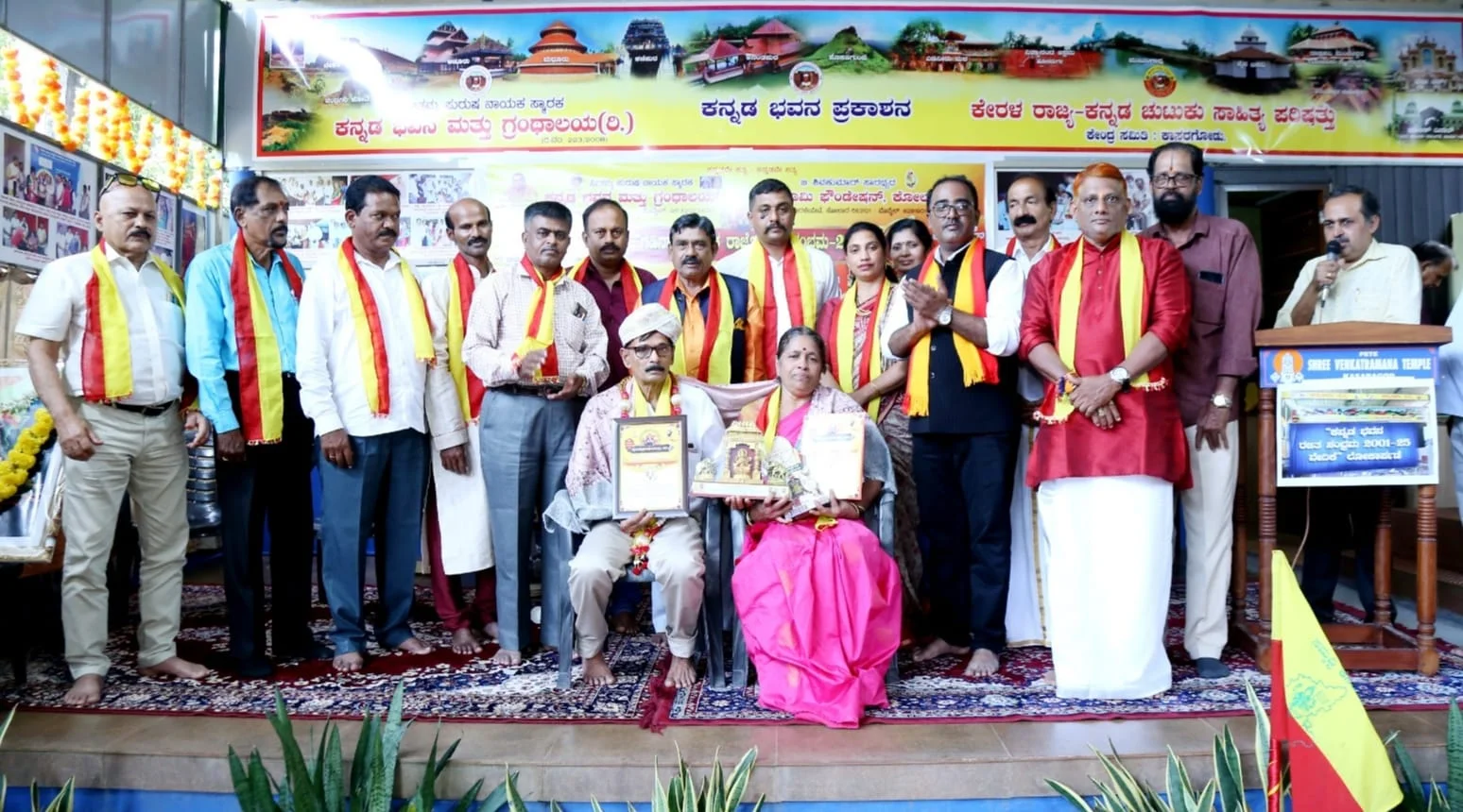 ಕಾಸರಗೋಡು :ಕಾಸರಗೋಡು ಕನ್ನಡ ಭವನ ಮತ್ತು ಗ್ರಂಥಾಲಯ, ಕನ್ನಡ ಭವನ ಪ್ರಕಾಶನ, ಕನ್ನಡ ಭವನ ಸಾರ್ವಜನಿಕ ವಾಚನಾಲಾಯ -ಕನ್ನಡ ಭವನ “ಉಚಿತ ವಸತಿ ಸೌಕರ್ಯ “ರಜತ ಸಂಭ್ರಮ ವಿಶೇಷ ಕರ್ನಾಟಕದ ಜಿಲ್ಲೆಗಳಲ್ಲಿ ಘಟಕ ಸ್ಥಾಪನೆಯೊಂದಿಗೆ ಕನ್ನಡ ಪರ ಚಟುವಟಿಕೆಗಳಲ್ಲಿ ಸದಾ ನಿರತರಾಗಿರುವ ದಂಪತಿಗಳಿಗೆ ರೋ. ಬಿ. ಶಿವಕುಮಾರ್ ಸಾರತ್ಯದ “ಸ್ವರ್ಣಭೂಮಿ ಫೌಂಡೇಶನ್, ಕೋಲಾರ -ಕರ್ನಾಟಕ ಕನ್ನಡ ರಾಜ್ಯೋತ್ಸವ ಸಾಧಕ ಕನ್ನಡ ದಂಪತಿ ಪ್ರಶಸ್ತಿ ನೀಡಿ ಗೌರವಿಸಿತು. ಕಾಸರಗೋಡು ಕನ್ನಡ ಭವನದಲ್ಲಿ 15.11.2025.ರಂದು ಒಂದಿಡೀ ದಿನ ನಡೆದ “ಕೋಲಾರ -ಕಾಸರಗೋಡು ಗಡಿನಾಡು ಕನ್ನಡ ರಾಜ್ಯೋತ್ಸವ “ಕಾರ್ಯಕ್ರಮದಲ್ಲಿ ಸ್ವರ್ಣಭೂಮಿ ಫೌಂಡೇಶನ್, ಕರ್ನಾಟಕ ಸ್ಥಾಪಕ ಅಧ್ಯಕ್ಷರಾದ ರೋ. ಬಿ. ಶಿವಕುಮಾರ್ ಪ್ರಶಸ್ತಿ ನೀಡಿದರು. ಕೋಲಾರ ಚುಟುಕು ಸಾಹಿತ್ಯ ಪರಿಷತ್ ಜಿಲ್ಲಾಧ್ಯಕ್ಷ ನಾರಣಪ್ಪ, ಮೇರು ಕವಿ, ಸಾಹಿತಿ, ಪ್ರಾಂಶುಪಾಲ ಶರಣಪ್ಪ ಗಬ್ಬೂರು,ಬಿ. ವೆಂಕಟ ರಾಮ, ಇಂಚರ ನಾರಾಯಣ ಸ್ವಾಮಿ,ಪ್ರಾಂಶುಪಾಲ ರಾಜೇಶ್ಚಂದ್ರ ಕೆ. ಪಿ. ಕೆ. ಜಿ. ವೆಂಕಟೇಶ್ ಶಿವಮೊಗ್ಗ, ಡಾ. ರವೀಂದ್ರ ಜೆಪ್ಪು, ಉಮೇಶ್ ರಾವ್ ಕುಂಬಳೆ, ಅರಿಬೈಲ್ ಗೋಪಾಲ್ ಶೆಟ್ಟಿ, ಡಾ. ಶಾಂತ ಪುತ್ತೂರು, ವಿರಾಜ್ ಅಡೂರ್, ಪ್ರದೀಪ್ ಬೇಕಲ್, ಎ. ಆರ್. ಸುಬ್ಬಯ್ಯಕಟ್ಟೆ, ರವಿ ನಾಯಿಕಾಪು, ರಾಜೇಶ್ ಕೋಟೆಕಣಿ ಮುಂತಾದವರಿದ್ದರು.