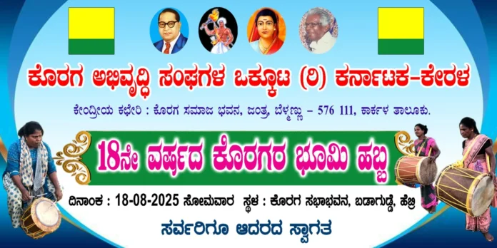 ಕೊರಗ ಅಭಿವೃದ್ಧಿ ಸಂಘಗಳ ಒಕ್ಕೂಟ (ರಿ) ಕರ್ನಾಟಕ-ಕೇರಳ ಪ್ರತಿವರ್ಷದಂತೆ ಈ ವರ್ಷವೂ 18ನೇ ವರ್ಷದ ಭೂಮಿ ಹಬ್ಬವನ್ನು ಆಗಸ್ಟ್ 18 ರಂದು ಹೆಬ್ರಿಯ ಬಡಾಗುಡ್ಡೆ ಕೊರಗರ ಸಭಾಭವನದಲ್ಲಿ ಆಚರಿಸಲಿದೆ.