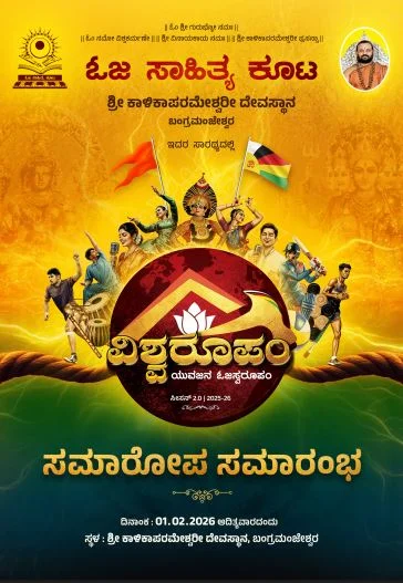 ಬಂಗ್ರಮಂಜೇಶ್ವರ : ಪೂಜ್ಯ ಜಗದ್ಗುರುಗಳ ದಿವ್ಯ ಸಾನ್ನಿಧ್ಯ : ಫೆಬ್ರವರಿ 1ರಂದು ಜಗದ್ಗುರುಗಳ ದಿವ್ಯ ಸಾನ್ನಿಧ್ಯದಲ್ಲಿ ‘ವಿಶ್ವ ರೂಪಂ 2.0’ ಭವ್ಯ ಸಮಾರೋಪ ಬಂಗ್ರಮಂಜೇಶ್ವರ: ಇಲ್ಲಿನ ಶ್ರೀ ಕಾಳಿಕಾಪರಮೇಶ್ವರೀ ದೇವಸ್ಥಾನದ ಆಶ್ರಯದಲ್ಲಿ, ಓಜ ಸಾಹಿತ್ಯ ಕೂಟದ ನೇತೃತ್ವದಲ್ಲಿ ಕಳೆದ 12 ವಾರಗಳಿಂದ ಅತ್ಯಂತ ಯಶಸ್ವಿಯಾಗಿ ನಡೆಯುತ್ತಿದ್ದ ಸಾಂಸ್ಕೃತಿಕ ಹಾಗೂ ಕ್ರೀಡಾ ಹಬ್ಬ “ವಿಶ್ವ ರೂಪಂ” ಯುವಜನ ಓಜಸ್ವರೂಪಂ – ಸೀಸನ್ 2.0 (2025-26) ರ ಸಂಭ್ರಮದ ಸಮಾರೋಪ ಸಮಾರಂಭವು ಇದೇ ಬರುವ ಫೆಬ್ರವರಿ 1, 2026ರಂದು ಜರುಗಲಿದೆ.