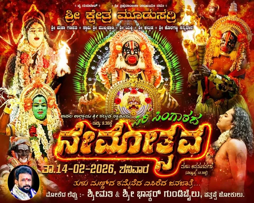ಶ್ರೀ ಕ್ಷೇತ್ರ ಮೂಡು ಸಗ್ರಿ ವರ್ತೆ ಕಲ್ಕುಡ ದೈವಗಳ ವಾರ್ಷಿಕ ನೇಮೋತ್ಸವ ದಿನಾಂಕ 14-02-2026 ರ ಶನಿವಾರದ ಜರಗಲಿದೆ.