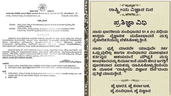 ಬೆಂಗಳೂರು : ವಿದ್ಯಾರ್ಥಿಗಳಲ್ಲಿ ವೈಜ್ಞಾನಿಕ ಮನೋಭಾವನೆ ಮೂಡಿಸಲು ಮತ್ತು ಮೌಢ್ಯತೆಯನ್ನು ಹೋಗಲಾಡಿಸಲು ಫೆಬ್ರವರಿ 28 ರಂದು ನಡೆಯಲಿರುವ ‘ರಾಷ್ಟ್ರೀಯ ವಿಜ್ಞಾನ ದಿನಾಚರಣೆ’ಯ ಅಂಗವಾಗಿ ರಾಜ್ಯ ಸರ್ಕಾರವು ಮಹತ್ವದ ನಿರ್ಧಾರವೊಂದನ್ನು ಕೈಗೊಂಡಿದೆ. ಅಂದು ರಾಜ್ಯದ ಎಲ್ಲಾ ಪ್ರಾಥಮಿಕ ಮತ್ತು ಪ್ರೌಢಶಾಲೆಗಳಲ್ಲಿ ಏಕಕಾಲದಲ್ಲಿ ‘ವೈಜ್ಞಾನಿಕ ಮನೋಭಾವನೆ ಹಾಗೂ ಮಾನವೀಯ ಮೌಲ್ಯಗಳ ಪ್ರತಿಜ್ಞಾ ವಿಧಿ’ ಸ್ವೀಕರಿಸುವುದು ಕಡ್ಡಾಯ ಎಂದು ಆದೇಶಿಸಿದೆ .