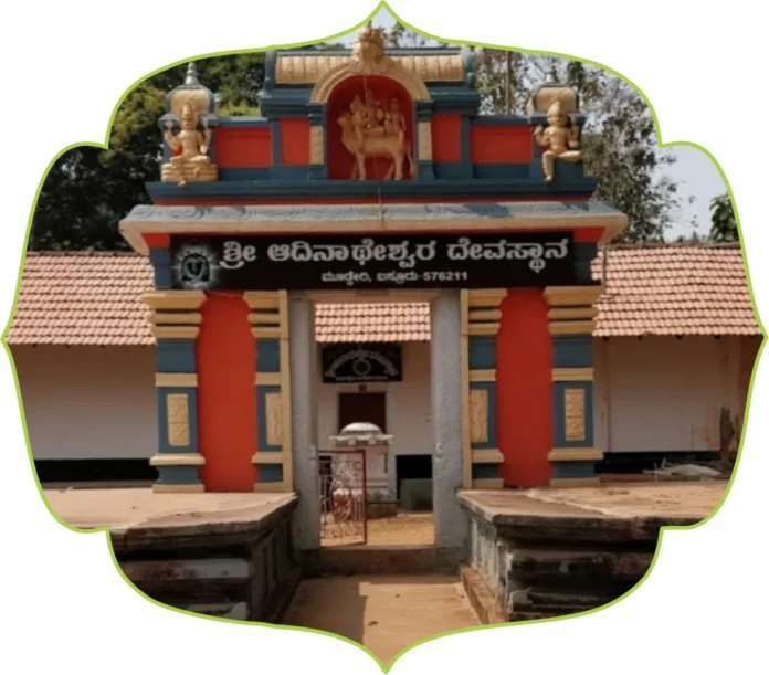 ಮಂದಿರ ಮಾಹಿತಿ : ಬಸ್ರೂರು ಪ್ರಾಚೀನ‌ ದೇವಸ್ಥಾನ ವೆಂದು‌ ಕರೆಯಲ್ಪಡುವ ಮೂಡ್ಕೇರಿ ಭಾಗದ ಶ್ರೀ ಆದಿನಾಥೇಶ್ವರ ದೇವಸ್ಥಾನ ಇತಿಹಾಸದ ಪುಸ್ತಕದಲ್ಲಿ ದಾಖಲಾಗಿರುವ ದೇವಸ್ಥಾನವಾಗಿದೆ. ಇಲ್ಲಿಯ ಈ ಹಿಂದೆ ಪ್ರಕಟಗೊಂಡಿರುವ ಒಂದು ಶಾಸನದ ಮಾಹಿತಿ