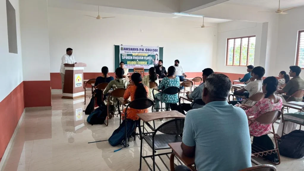 ಗ್ರಾಮೀಣ ಭಾಗದ ವಿದ್ಯಾರ್ಥಿಗಳಿಗೆ ಉತ್ತಮ ಗುಣಮಟ್ಟದ ಮೌಲ್ಯಾಧಾರಿತ ಆಧುನಿಕ ವಿದ್ಯಾಭ್ಯಾಸವನ್ನು ನೀಡುವ ಯೋಜನೆಯೊಂದಿಗೆ ಆರಂಭಗೊಂಡ ಅಕ್ಷಯ ಪದವಿಪೂರ್ವ ಕಾಲೇಜಿನಲ್ಲಿ ದಿನಾಂಕ 15 ರಂದು ಉಚಿತ ಬ್ರಿಡ್ಜ್ ಕೋರ್ಸ್ ಮತ್ತು ಸ್ಪೋಕನ್ ಇಂಗ್ಲೀಷ್ ತರಗತಿಗಳ ಉದ್ಘಾಟನೆ ವಿದ್ಯುಕ್ತವಾಗಿ ನೆರವೇರಿತು.