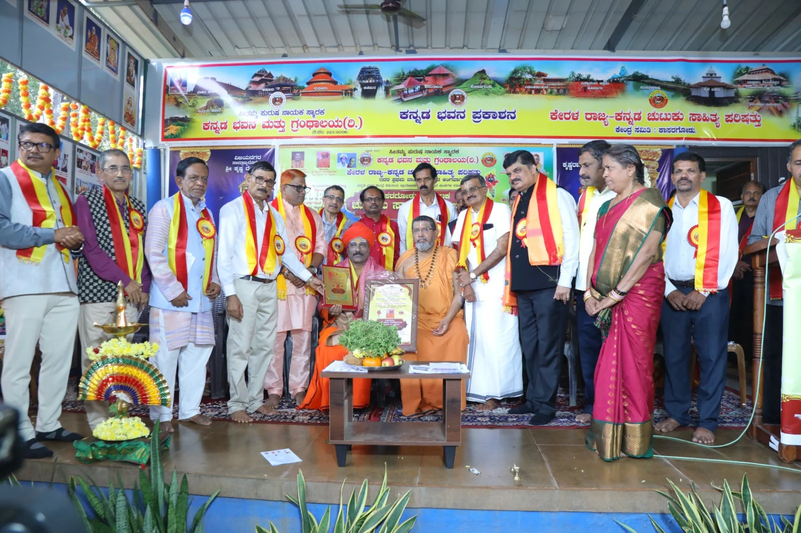 ಕಾಸರಗೋಡು : ಕನ್ನಡ ಭವನದಿಂದ ಪ್ರಯೋಜಿತ ಕಾಸರಗೋಡು -ಕರ್ನಾಟಕ ಸಾಹಿತ್ಯ ಸಮ್ಮೇಳನ 2026.ಕಾರ್ಯಕ್ರಮ ಕ್ಕೆ ಸಾಹಿತ್ಯ ಆಶೀರ್ವಚನಕ್ಕೆ ವಿಶೇಷ ಆಹ್ವಾನಿತಾರಾಗಿ ಆಗಮಿಸಿದ ಶ್ರೀ ಶ್ರಿ ರಮೇಶ ಮಹಾಸ್ವಾಮಿಗಳು ಗೋವಿನಾಳ ಲಕ್ಷ್ಮೇಶ್ವರ ಇವರೀಗೆ ಗೌರವ ಆಥಿತ್ಯ ನೀಡಿ ಅನುಗ್ರಹ ಗಿಟ್ಟಿಸಿಕೊಂಡ ಕನ್ನಡ ಭವನ ಸ್ಥಾಪಕರಾದ ಡಾ. ವಾಮನ್ ರಾವ್ ಬೇಕಲ್ -ಸಂದ್ಯಾ ರಾಣಿ ಟೀಚರ್, ಎಡನೀರು ಶ್ರೀಗಳಾದ ಶ್ರೀ ಶ್ರೀ ಸಚ್ಚಿದಾನಂದ ಭಾರತೀ ಶ್ರೀಗಳವರ ನೇತೃತ್ವದಲ್ಲಿ ಫಲ ಪುಷ್ಪ ಉತ್ತರೀಯ, ಹಾರಾರ್ಪಣೆ, ಸ್ಮರಣಿಕೆ, ಹಾಗೂ ಗೌರವ ಫಲಕ ಗಳೊಂದಿಗೆ ಮನಮುಟ್ಟುವ ಗೌರವಾರ್ಪಣೆ ನೀಡಿ ಸನ್ಮಾನಿಸಿದರು.