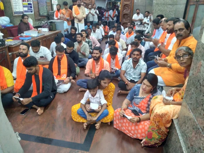 ಮಹೇಶ್ ವಿಕ್ರಮ್ ಹೆಗ್ಡೆ ಬಂಧನ ವಿರೋಧಿಸಿ ಹನುಮಂತ ದೇವಸ್ಥಾನದಲ್ಲಿ ಹನುಮಾನ್ ಚಾಲೀಸ ಪಠಣ