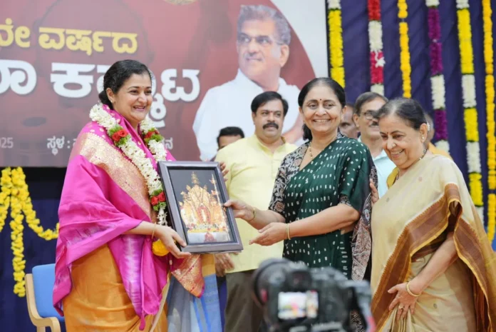 ಧರ್ಮಸ್ಥಳ: ಶ್ರೀ ಧರ್ಮಸ್ಥಳ ಮಂಜುನಾಥೇಶ್ವರ ಭಜನಾ ಪರಿಷತ್ ಆಯೋಜಿಸಿರುವ ೨೦೨೫ನೇ ಸಾಲಿನ ಸಪ್ಟೆಂಬರ್ ೧೪ ರಿಂದ ೨೧ರವರೆಗೆ ನಡೆಯಲಿರುವ ೨೭ನೇ ವರ್ಷದ ಭಜನಾ ತರಬೇತಿ ಕಮ್ಮಟದಲ್ಲಿ ಶಿಬಿರಾರ್ಥಿಗಳಿಗೆ ಭಜನೆ ಹಾಡುವ ತರಬೇತಿ ನೀಡಿದ ಗಾಯಕಿ ಅರ್ಚನಾ ಉಡುಪರವರನ್ನು ಹೇಮಾವತಿ ವಿ. ಹೆಗ್ಗಡೆಯವರು ಸನ್ಮಾನಿಸಿ ಅಭಿನಂದಿಸಿದರು.