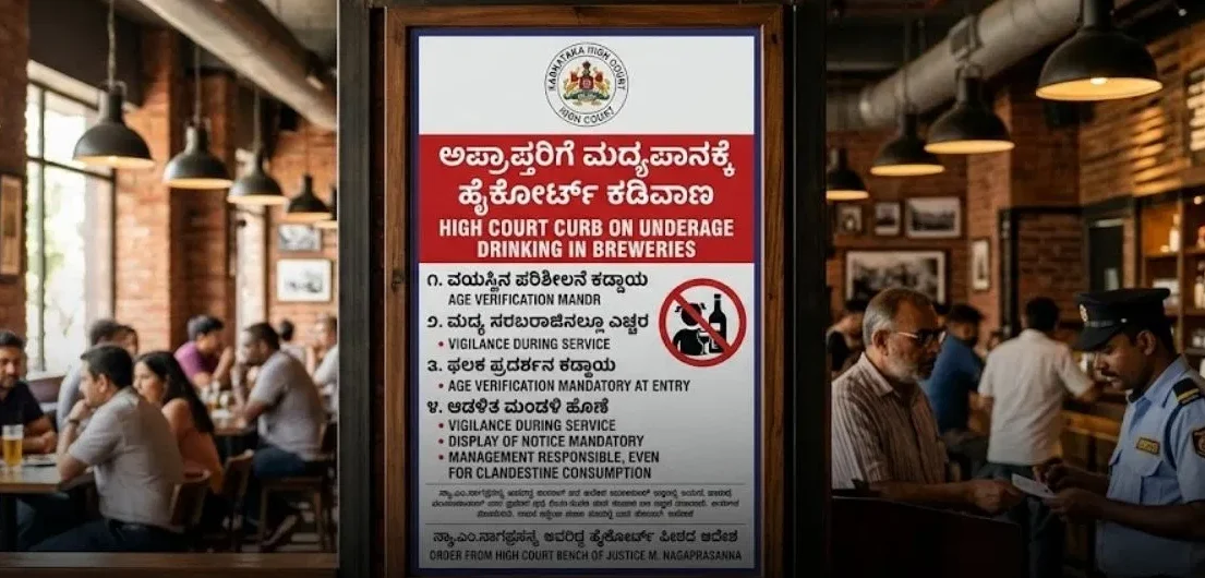 ಮಂಗಳೂರು: ಪಬ್ ಮತ್ತು ಬ್ರೀವರಿಗಳಲ್ಲಿ ಅಪ್ರಾಪ್ತರು ಮದ್ಯಪಾನ ಮಾಡುವ ಪ್ರವೃತ್ತಿಗೆ ಕರ್ನಾಟಕ ಹೈಕೋರ್ಟ್ ಗಂಭೀರ ಕಡಿವಾಣ ಹಾಕಿದೆ. ಅಪ್ರಾಪ್ತರನ್ನು ಮದ್ಯಪಾನದ ವ್ಯಸನದಿಂದ ರಕ್ಷಿಸುವುದು ಆಡಳಿತ ಮಂಡಳಿಯ ನೈತಿಕ ಮತ್ತು ಶಾಸನಾತ್ಮಕ ಕರ್ತವ್ಯ ಎಂದು ನ್ಯಾಯಾಲಯ ಸ್ಪಷ್ಟಪಡಿಸಿದೆ. ಬ್ರೀವರಿಗಳಿಗೆ ಗ್ರಾಹಕರು ಪ್ರವೇಶಿಸುವಾಗಲೇ ಅವರ ವಯಸ್ಸನ್ನು ಕಡ್ಡಾಯವಾಗಿ ಪರಿಶೀಲಿಸಬೇಕು. ಮದ್ಯ ಸರಬರಾಜು ಮಾಡುವ ಸಂದರ್ಭದಲ್ಲೂ ಸಿಬ್ಬಂದಿಗಳು ಈ ಬಗ್ಗೆ ಎಚ್ಚರಿಕೆ ವಹಿಸಬೇಕು ಎಂದು ನ್ಯಾಯಮೂರ್ತಿ ಎಂ. ನಾಗಪ್ರಸನ್ನ ಅವರಿದ್ದ ಪೀಠ ಆದೇಶಿಸಿದೆ.