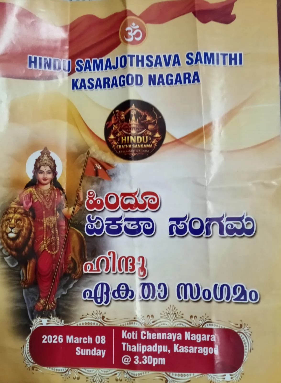 Uncategorizedಹಿಂದೂ ಸಮಾಜ ಪ್ರಮುಖರಿಂದ “ಹಿಂದೂ ಏಕತಾ ಸಂಗಮ “ಕರಪತ್ರ ಬಿಡುಗಡೆBy TNVOffice - February 7, 2026020FacebookTwitterPinterestWhatsApp ಹಿಂದೂ ಸಮಾಜೋತ್ಸವ ಕಾಸರಗೋಡು ನಗರ ಸಮಿತಿ ಆಶ್ರಯದಲ್ಲಿ 8-3-2026 ರಂದು ಕಾಸರಗೋಡು ನಡೆಯಲಿರುವ , ಹಿಂದೂ ಏಕತಾ ಸಂಗಮಗ್ರಹ ಸಂಪರ್ಕ ಕರಪತ್ರ ಬಿಡುಗಡೆ ಕಾಸರಗೋಡು ಶ್ರೀ ಮಲ್ಲಿಕಾರ್ಜುನ ಕ್ಷೇತ್ರ ಸನ್ನಿಧಿಯಲ್ಲಿ ಜರಗಿತು.