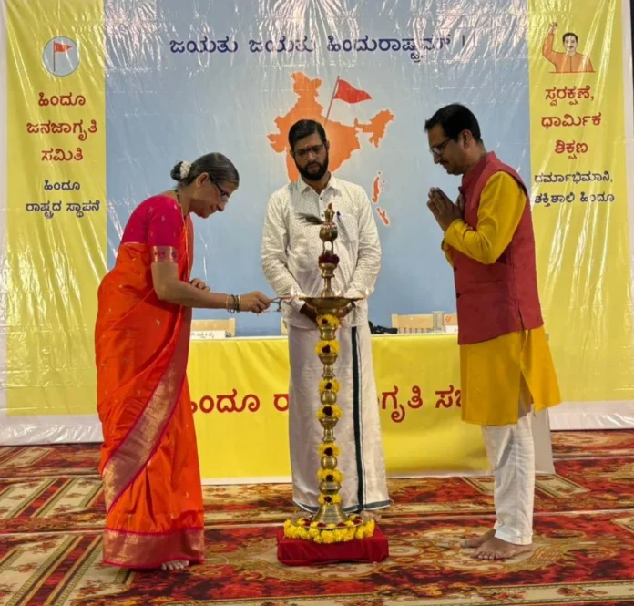 ಹಿಂದೂಗಳ ಸಂಘಟನೆ ಮತ್ತು ಹಿಂದೂ ರಾಷ್ಟ್ರದ ಸ್ಥಾಪನೆಯ ಉದ್ದೇಶದೊಂದಿಗೆ ಹಿಂದೂ ಜನಜಾಗೃತಿ ಸಮಿತಿಯ ವತಿಯಿಂದ ಮಂಗಳೂರಿನ ಕುದ್ರೋಳಿ ಶ್ರೀ ಭಗವತಿ ಕ್ಷೇತ್ರ, ಕೋಡಿಯಲ್ ಬೈಲ್ ನ ಕೂಟಕ್ಕಲ ಆಡಿಟೋರಿಯಂ ನಲ್ಲಿ ಭಾನುವಾರ ‘ಹಿಂದೂ ರಾಷ್ಟ್ರ-ಜಾಗೃತಿ ಸಭೆ’ಯು ಅತ್ಯಂತ ಯಶಸ್ವಿಯಾಗಿ ಜರುಗಿತು. ಕಾರ್ಯಕ್ರಮವನ್ನು ದೀಪಪ್ರಜ್ವಲನೆ ,ಶಂಖನಾದ ಮತ್ತು ವೇದಮಂತ್ರ ಘೋಷದಿಂದ ಪ್ರಾರಂಭಿಸಲಾಯಿತು.