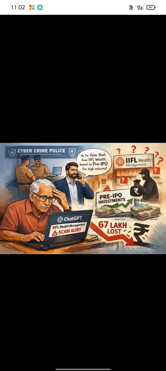 ಚಾಟ್‌ಜಿಪಿಟಿ ಮೂಲಕ ಸಂಸ್ಥೆಯ ರುಜುವಾತುಗಳನ್ನು ಪರಿಶೀಲಿಸಿದ ನಂತರ ತಾನು ಲಾಭದಾಯಕ ಪ್ರೀ-ಐಪಿಒ ಷೇರು ಮಾರುಕಟ್ಟೆ ಹೂಡಿಕೆ ನೆಪದಲ್ಲಿ ₹67 ಲಕ್ಷಕ್ಕೂ ಹೆಚ್ಚು ಹಣವನ್ನು ಕಳೆದುಕೊಂಡಿದ್ದೇನೆ ಎಂಬುದನ್ನು ತಿಳಿದ 77 ವರ್ಷದ ಹಿರಿಯ ನಾಗರಿಕರೊಬ್ಬರು ಸೈಬರ್ ಕ್ರೈಂ ಪೊಲೀಸರನ್ನು ಸಂಪರ್ಕಿಸಿದ್ದಾರೆ.