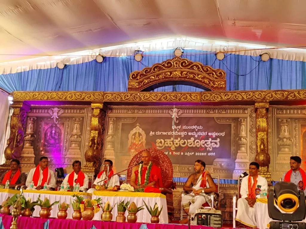 ಅವರು ಶ್ರೀ ದುರ್ಗಾಪರಮೇಶ್ವರಿ ಅಮ್ಮನವರ ದೇವಸ್ಥಾನ ಮುಂಡಳ್ಳಿ ಇದರ ಅಷ್ಟಬಂಧ ಬ್ರಹ್ಮ ಕಲಶೋತ್ಸವದ ಎರಡನೇ ದಿನವಾದ ಸೋಮವಾರ ಸಭಾ ಕಾರ್ಯಕ್ರಮ ಸಾನಿಧ್ಯ ವಹಿಸಿ ಮಾತನಾಡಿದರು. ಭಾರತ ಹಿಂದೆಂದು ಕಾಣದ ರೀತಿಯಲ್ಲಿ ಅಭೂತಪೂರ್ವ ವಾಗಿ ಬದಲಾವಣೆ ಕಾಣುತ್ತಿದೆ. ಭಾರತದ ಮುಂದೆ ಜಗತ್ತು ತಲೆಬಾಗಿದೆ. ಹದು ಸಮಾಜದ ಜಾಗೃತ ಸ್ಥಿತಿ ಯಿಂದ ಇದು ಸಾಧ್ಯವಾಗಿದೆ ಎಂದರು.