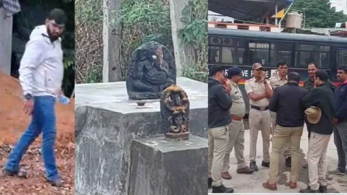 ಬಂಗಾರಪ್ಪ ಬಡಾವಣೆಯ ಮುಖ್ಯ ರಸ್ತೆಯ ಬಳಿಯ ಪಾರ್ಕ್ ನಲ್ಲಿ ಗಣೇಶನ ಮೂರ್ತಿ ಹಾಗೂ ನಾಗನ ಮೂರ್ತಿಯನ್ನು ಪ್ರತಿಷ್ಠಾಪಿಸಲಾಗಿತ್ತು. ಆದರೆ ನಿನ್ನೆ (ಜುಲೈ 05) ಸಂಜೆ ಇಬ್ಬರು ಅನ್ಯಕೋಮಿ ಯುವಕರು ಗಣೇಶನ ಮೂರ್ತಿಗೆ ಕಾಲಿನಿಂದ ಒದ್ದು ಹಾಗೂ ಅಲ್ಲೇ ಇದ್ದ ನಾಗನ ವಿಗ್ರಹ ಚರಂಡಿಗೆ ಎಸೆದು ಪರಾರಿಯಾಗಿದ್ದರು. ಈ ಸಂಬಂಧ ಶಿವಮೊಗ್ಗ ಗ್ರಾಮಾಂತರ ಪೊಲೀಸ್ ಠಾಣೆಯಲ್ಲಿ ದೂರು ದಾಖಲಾಗಿತ್ತು, ಅದರಂತೆ ಇದೀಗ ಇಬ್ಬರು ಯುವಕರನ್ನು ಪೊಲೀಸರು ಬಂಧಿಸಿ ವಿಚಾರಣೆ ನಡೆಸುತ್ತಿದ್ದಾರೆ.