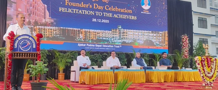 ಅಜೆಕಾರು ಪದ್ಮ ಗೋಪಾಲ ಎಜುಕೇಶನ್ ಟ್ರಸ್ಟ್ ಜ್ಞಾನಸುಧ ಶಿಕ್ಷಣ ಸಂಸ್ಥೆ ವತಿಯಿಂದ ರವಿವಾರ ಕಾರ್ಕಳ ದ ಜ್ಞಾನಸುಧ ಶಿಕ್ಷಣ ಸೌಂದರ್ಯ ಆವರಣದಲ್ಲಿ ಜರುಗಿದ ಸಂಸ್ಥಾಪಕರು ದಿನಾಚರಣೆಯಲ್ಲಿ ಅವರು ಮಾತನಾಡಿದರು. ವಿದ್ಯಾರ್ಥಿಗಳಲ್ಲಿ ಉನ್ನತ ಶಿಕ್ಷಣ ಪಡೆಯುವ ಹಂತದಲ್ಲಿ ವಿಮರ್ಶ ಆತ್ಮಕ ಚಿಂತನೆ ಸ್ವಜನಶೀಲತೆ ತಂಡ ಕಾರ್ಯ ಹಾಗೂ ಉತ್ತಮ ಸoವ ಹನ ಕೌಶಲಗಳು ಅತ್ಯಗತ್ಯ ಜ್ಞಾನವು ಎಲ್ಲೆಡೆ ಲಭ್ಯವಿರುವ ಇಂದಿನ ಕಾಲದಲ್ಲಿ ಅದನ್ನು ಸರಿಯಾಗದ ರೀತಿಯಲ್ಲಿ ಬಳಸುವ ಸಾಮರ್ಥ್ಯವನ್ನು ವಿದ್ಯಾರ್ಥಿಗಳು ಬೆಳೆದುಕೊಳ್ಳಬೇಕು ಎಂದು ಕಿವಿಮಾತು ಹೇಳಿದರು ಶಿಕ್ಷಕರು ಮತ್ತು ಪೋಷಕರು ಪರಸ್ಪರ ಕೈ ಜೋಡಿಸಿದಾಗ ಮಾತ್ರ ವಿದ್ಯಾರ್ಥಿಗಳಲ್ಲಿ ಆತ್ಮವಿಶ್ವಾಸ ಬೆಳೆಯಲು ಸಾಧ್ಯ ಜ್ಞಾನಸುಧ ಸಂಸ್ಥೆ ಯು ಶಿಸ್ತು ಮತ್ತು ನೈತಿಕತೆಯ ಮೂಲಕ ದೇಶಕ್ಕೆ ಆಸ್ತಿಯಾಗುವ ನಾಗರಿಕರನ್ನು ರೂಪಿಸುತ್ತೇವೆ ಎಂದು ಪ್ರಶಂಸಿದ್ದರು. ಕೇವಲ ಕಟ್ಟಡಗಳಿಂದ ಶಿಕ್ಷಣ ಸಂಸ್ಥೆಗಳು ಶ್ರೇಷ್ಠ ವಿನಿಸುವುದಿಲ್ಲ. ಅಲ್ಲಿನ ವಿದ್ಯಾರ್ಥಿಗಳು ಪಡೆಯುವ ಉತ್ತಮ ಸಂಸ್ಕಾರ ಮತ್ತು ಮೌಲ್ಯಗಳಿಂದ ಸಂಸ್ಥೆಯ ಘನತೆ ಹೆಚ್ಚುತ್ತದೆ ಜ್ಞಾನಸುಧ ಶಿಕ್ಷಣ ಸಂಸ್ಥೆಯು ಡಾಕ್ಟರ್ ಸುಧಾಕರ್ ಶೆಟ್ಟಿ ಅವರ ಮಾರ್ಗದರ್ಶನದಲ್ಲಿ ವಿದ್ಯಾರ್ಥಿಗಳಿಗೆ ಕೇವಲ ಪಠ್ಯದ ಜ್ಞಾನವಸ್ಥೆ ಅಲ್ಲ ಬದಲು ಕಟ್ಟಿಕೊಡುವ ಮತ್ತು ಜೀವನದ ಮೌಲ್ಯಗಳನ್ನು ಎತ್ತಿ ಹಿಡಿಯುವ ಕಾರ್ಯವನ್ನು ಯಶಸ್ವಿಯಾಗಿ ಮಾಡುತ್ತಿವೆ ಎಂದು ಶ್ಲಾಘಿಸಿದರು.