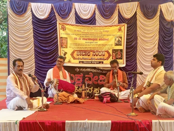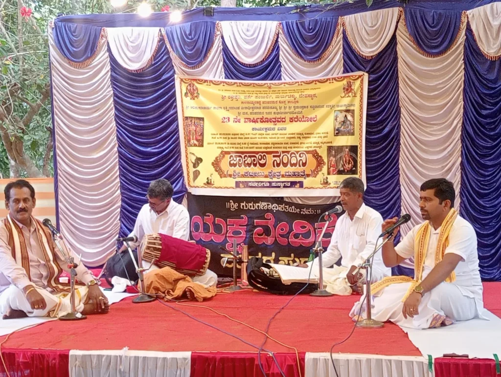 ಜಾಬಾಲಿ – ನಂದಿನಿ : ಕಟೀಲು ಕ್ಷೇತ್ರ ಮಹಾತ್ಮೆ ಪ್ರಸಂಗದಿಂದ ಆಯ್ದ ‘ಜಾಬಾಲಿ – ನಂದಿನಿ’ ಆಖ್ಯಾನವನ್ನು ಯಕ್ಷಗಾನ ತಾಳಮದ್ದಳೆ ರೂಪದಲ್ಲಿ ಕಲಾವಿದರು ಪ್ರಸ್ತುತಪಡಿಸಿದರು. ಪ್ರಮುಖ ಪಾತ್ರಗಳಲ್ಲಿ ದಕ್ಷಿಣ ಕನ್ನಡ ಜಿಲ್ಲೆಯ ಮಂಗಳೂರಿಂದ ಪ್ರೊ.ಭಾಸ್ಕರ ರೈ ಕುಕ್ಕುವಳ್ಳಿ (ಜಾಬಾಲಿ) ಮತ್ತು ವಿಜಯ ಶಂಕರ ಆಳ್ವ ಮಿತ್ತಳಿಕೆ (ನಂದಿನಿ) ಅರ್ಥಧಾರಿಗಳಾಗಿ ಭಾಗವಹಿಸಿದರು. ಉಳಿದ ಪಾತ್ರಗಳಲ್ಲಿ ಸ್ಥಳೀಯ ಕಲಾವಿದರಾದ ಅರವಿಂದ ಸೋಮಯಾಜಿ (ದೇವೇಂದ್ರ), ಕೆ.ಎಸ್. ಮಂಜುನಾಥ ಹರಿಹರಪುರ (ಶ್ರೀದೇವಿ) ಮತ್ತು ಶ್ರವಣಕುಮಾರ್ (ಪುರಜನರು) ಪಾಲ್ಗೊಂಡರು.
