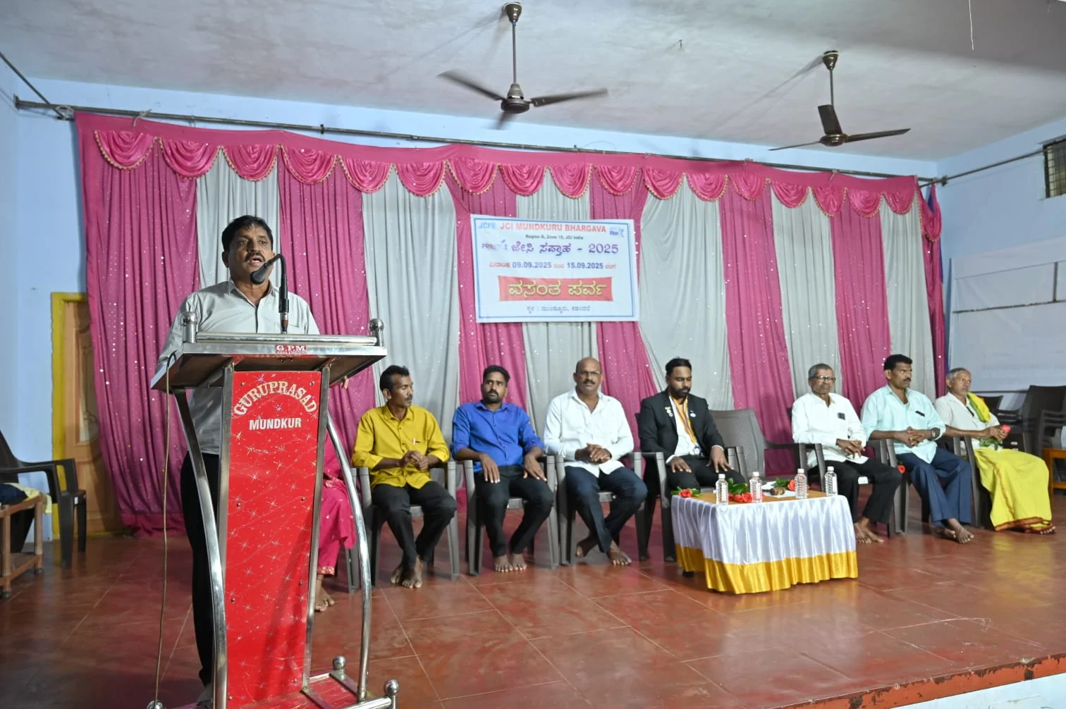 ಮೂಡುಬಿದಿರೆ: ದಿನಾಂಕ 11/9/2025 ರಂದು ಬ್ರಹ್ಮಶ್ರೀ ನಾರಾಯಣ ಗುರು ಸಭಾಭವನ ಪೂಪಾಡಿಕಲ್ಲು ಕಡಂದಲೆಯಲ್ಲಿ ಜೇಸಿಐ ಮುಂಡ್ಕೂರು ಭಾರ್ಗವದ ಜೇಸಿ ಸಪ್ತಾಹ-2025 ” ವಸಂತ ಪರ್ವ” 3ನೇ ದಿನದ ಕಾರ್ಯಕ್ರಮದ ಸಭಾ ಕಾರ್ಯಕ್ರಮದಲ್ಲಿ ಜೇಸಿ ಅಧ್ಯಕ್ಷರು JFM ವಸಂತ್ ಸ್ವಾಗತಿಸಿದರು.