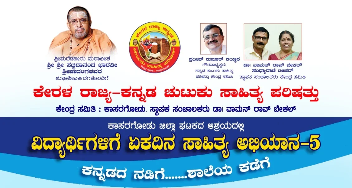 ಕಾಸರಗೋಡು : ಕಾಸರಗೋಡು ನುಳ್ಳಿಪ್ಪಾಡಿಯ ಸೀತಮ್ಮ ಪುರುಷ ನಾಯಕ ಕನ್ನಡ ಭವನ ಮತ್ತು ಗ್ರಂಥಾಲಯದ ಅಂಗ ಸಂಸ್ಥೆಯಾದ ಕೇರಳ ರಾಜ್ಯ ಕನ್ನಡ ಚುಟುಕು ಸಾಹಿತ್ಯ ಪರಿಷತ್ತಿನ ಕಾಸರಗೋಡು ಜಿಲ್ಲಾ ಘಟಕದ ಆಶ್ರಯದಲ್ಲಿ ವಿದ್ಯಾರ್ಥಿಗಳಿಗಾಗಿ ನಡೆಯುವ ಏಕದಿನ ಕನ್ನಡ ಸಾಹಿತ್ಯ ಅಭಿಯಾನವಾದ, ‘ಕನ್ನಡದ ನಡಿಗೆ ಶಾಲೆಯ ಕಡೆಗೆ” ಶೈಕ್ಷಣಿಕ ಶಿಬಿರದ 5ನೇ ಕಾರ್ಯಕ್ರಮವು 2025 ಆಗಸ್ಟ್ 23ರಂದು ಬೆಳಗ್ಗೆ 9.30ರಿಂದ ಕೊಂಡೆವೂರು ಶ್ರೀ ಸದ್ಗುರು ನಿತ್ಯಾನಂದ ವಿದ್ಯಾಪೀಠದಲ್ಲಿ ನಡೆಯಲಿದೆ. ಕಾರ್ಯಕ್ರಮವನ್ನು ಕಾಸರಗೋಡಿನ ಕನ್ನಡ ಭವನ ಮತ್ತು ಗ್ರಂಥಾಲಯದ ಸ್ಥಾಪಕ ಅಧ್ಯಕ್ಷ ಡಾ. ಕೆ ವಾಮನ್ ರಾವ್ ಬೇಕಲ್ – ಸಂಧ್ಯಾರಾಣಿ ಟೀಚರ್ ಉದ್ಘಾಟಿಸುವರು. ಶಾಲೆಯ ಆಡಳಿತ ಮಂಡಳಿಯ ಸದಸ್ಯ, ನಿವೃತ್ತ ಶಿಕ್ಷಕ ವಿ. ಬಿ. ಕುಳಮರ್ವ ಸಭೆಯ ಅಧ್ಯಕ್ಷತೆ ವಹಿಸುವರು.