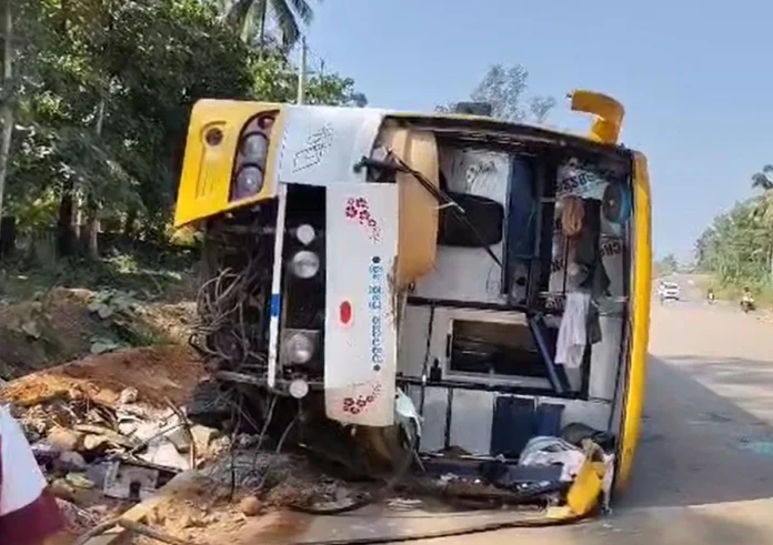 ಕಾರ್ಕಳ: ಮಂಗಳೂರಿನಿಂದ ಕಾರ್ಕಳ ಆಗಿ ದಾವಣಗೆರೆ ಸಾಗುತ್ತಿದ್ದ ಶ್ರೀ ದುರ್ಗಾಂಬಾ ಬಸ್ ಬುಧವಾರ ರಾತ್ರಿ ಜೋಡುಕಟ್ಟೆಯಲ್ಲಿ ಪಲ್ಟಿಯಾಗಿದೆ.