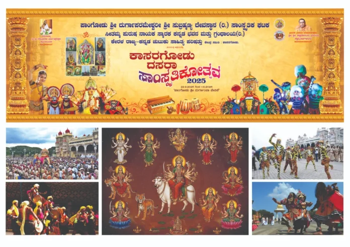 ಕಾಸರಗೋಡು ಪಾಂಗೋಡು ಶ್ರೀ ದುರ್ಗಾಪರಮೇಶ್ವರಿ ಶ್ರೀ ಸುಬ್ರಹ್ಮಣ್ಯ ದೇವಸ್ಥಾನದ “ಶ್ರೀ ದುರ್ಗಾಂಬ ವೇದಿಕೆ” ಯಲ್ಲಿ 2925 ಸೆಪ್ಟೆಂಬರ್ 22 ರಿಂದ ಅಕ್ಟೋಬರ್ 1 ರ ತನಕ ಕಾಸರಗೋಡು ದಸರಾ ಸಾಂಸ್ಕೃತಿಕೋತ್ಸವ-2025 ಜರುಗಲಿದೆ.