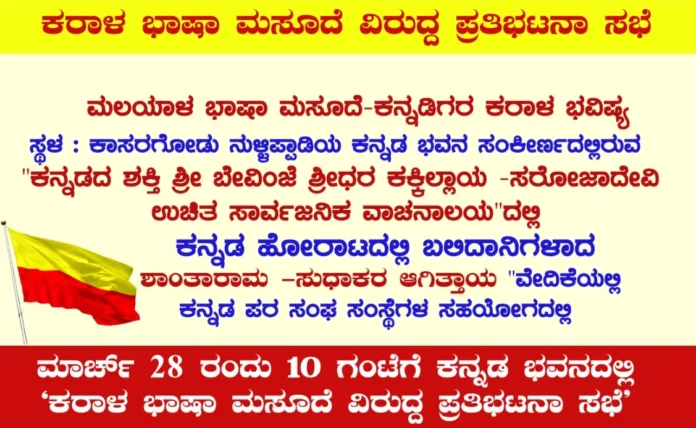 ಕಾಸರಗೋಡು : ಮಾ.28ರಂದು ಕನ್ನಡ ಭವನದಲ್ಲಿ ಕರಾಳ ಭಾಷಾ ಮಸೂದೆ ವಿರುದ್ದ ಪ್ರತಿಭಟನಾ ಸಭೆ