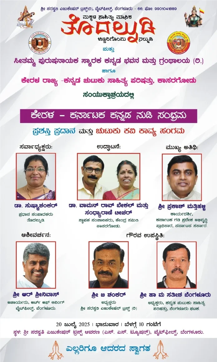 ಬೆಂಗಳೂರು : ಕಾಸರಗೋಡಿನ ನುಳ್ಳಿಪ್ಪಾಡಿಯ ಸೀತಮ್ಮ ಪುರುಷ ನಾಯಕ ಸ್ಮಾರಕ ಕನ್ನಡ ಭವನ ಮತ್ತು ಗ್ರಂಥಾಲಯ, ಕಾಸರಗೋಡಿನ ಕೇರಳ ರಾಜ್ಯ- ಕನ್ನಡ ಚುಟುಕು ಸಾಹಿತ್ಯ ಪರಿಷತ್ತು ಮತ್ತು ತೊದಲ್ನುಡಿ ಮಕ್ಕಳ ಸಾಹಿತ್ಯ ಮಾಸಿಕದ ಜಂಟಿ ಆಶ್ರಯದಲ್ಲಿ ಕೇರಳ – ಕರ್ನಾಟಕ ಕನ್ನಡ ನುಡಿ ಸಂಭ್ರಮ, ಪ್ರಶಸ್ತಿ ಪ್ರದಾನ ಮತ್ತು ಚುಟುಕು ಕವಿ ಕಾವ್ಯ ಸಂಗಮ ಕಾರ್ಯಕ್ರಮವು ಬೆಂಗಳೂರಿನ ವೈಟ್ ಫೀಲ್ಡ್ ನ ಶ್ರೀ ಸರಸ್ವತಿ ಎಜುಕೇಶನ್ ಟ್ರಸ್ಟ್ ಆವರಣದಲ್ಲಿ ಜುಲೈ 20ರಂದು ಬೆಳಿಗ್ಗೆ 10ರಿಂದ ನಡೆಯಲಿದೆ. ತೊದಲ್ನುಡಿ ಸಂಪಾದಕಿ ಡಾ. ಸುಷ್ಮಾ ಶಂಕರ್ ಸಭೆಯ ಅಧ್ಯಕ್ಷತೆ ವಹಿಸುವರು. ಕೇರಳ ರಾಜ್ಯ ಕನ್ನಡ ಚುಟುಕು ಸಾಹಿತ್ಯ ಪರಿಷತ್ತಿನ ಸ್ಥಾಪಕ ಸಂಚಾಲಕರಾದ ಡಾ. ಕೆ ವಾಮನ್ ರಾವ್ ಬೇಕಲ್ – ಸಂಧ್ಯಾರಾಣಿ ಟೀಚರ್ ಉದ್ಘಾಟಿಸುವರು. ಕರ್ನಾಟಕ ಸರಕಾರದ ಕರ್ನಾಟಕ ಗಡಿ ಪ್ರದೇಶ ಅಭಿವೃದ್ಧಿ ಪ್ರಾಧಿಕಾರದ ಕಾರ್ಯದರ್ಶಿ ಪ್ರಕಾಶ್ ಮತ್ತಿಹಳ್ಳಿ ಮುಖ್ಯ ಅತಿಥಿಗಳಾಗಿ ಭಾಗವಹಿಸುವರು. ಬೆಂಗಳೂರಿನ ಆರ್ಟ್ ಅಫ್ ಲಿವಿಂಗ್ ಆಚಾರ್ಯ ಆರ್ ಶ್ರೀನಿವಾಸ್ ಆಶೀರ್ವಚನ ನೀಡುವರು. ಸರಸ್ವತಿ ಎಜುಕೇಶನ್ ಟ್ರಸ್ಟಿನ ಅಧ್ಯಕ್ಷ ಬಿ. ಶಂಕರ್, ಕೇರಳ ರಾಜ್ಯ ಕನ್ನಡ ಚುಟುಕು ಸಾಹಿತ್ಯ ಪರಿಷತ್ತಿನ ಬೆಂಗಳೂರು ಘಟಕದ ಅಧ್ಯಕ್ಷ ಹಾ. ಮ. ಸತೀಶ ಭಾಗವಹಿಸುವರು. ಈ ಸಂದರ್ಭದಲ್ಲಿ ಪತ್ರಕರ್ತರಾದ ಗಣೇಶ್ ಕಾಸರಗೋಡು, ಸುಬ್ರಹ್ಮಣ್ಯ ಬಾಡೂರು, ಪ್ರಾಧ್ಯಾಪಕ ಡಾ. ಬಾಲಕೃಷ್ಣ ಎಸ್ ಮುದ್ದೋಡಿ, ಅವರಿಗೆ ರಾಷ್ಟ್ರಕವಿ ಗೋವಿಂದ ಪೈ ರಾಷ್ಟ್ರೀಯ ಪ್ರಶಸ್ತಿ-2025, ಡಾ. ಸುಷ್ಮಾ ಶಂಕರ್ ಹಾಗೂ ಪ್ರಕಾಶ ಮತ್ತಿಹಳ್ಳಿ ಅವರಿಗೆ ಡಾ. ಕಯ್ಯಾರ ಕಿಂಞಣ್ಣ ರೈ ರಾಷ್ಟ್ರೀಯ ಪ್ರಶಸ್ತಿ – 2025 ಮತ್ತು ಪದ ದೇವರಾಜ್, ಹಾ. ಮ. ಸತೀಶ, ಆರ್ ಶ್ರೀನಿವಾಸ, ಡಾ. ಕೆ ಮಲರ್ ವಿಳಿ, ಮೇರಿ ಜೋಸೆಫ್, ಡಾ. ರವಿಶಂಕರ ಎ ಕೆ ಅವರಿಗೆ ಕನ್ನಡ ಪಯಸ್ವಿನಿ ಪ್ರಶಸ್ತಿ-2025 ಪ್ರದಾನ ಮಾಡಲಾಗುವುದು. ನಂತರ ಸುಮಾರು 20 ಕವಿಗಳಿಂದ ಚುಟುಕು ಕಾವ್ಯ ಸಂಗಮ ನಡೆಯಲಿದೆ. ಕಾರ್ಯಕ್ರಮದಲ್ಲಿ ಡಾ. ಕಿಶೋರ್, ಕನ್ನಡ ಭವನದ ಕಾರ್ಯದರ್ಶಿ ವಸಂತ ಕೆರೆಮನೆ ಸಹಕರಿಸುವರು ಎಂದು ಕನ್ನಡ ಭವನದ ಸ್ಥಾಪಕ ಅಧ್ಯಕ್ಷ ಡಾ. ವಾಮನ್ ರಾವ್ ಬೇಕಲ್ ತಿಳಿಸಿದ್ದಾರೆ.