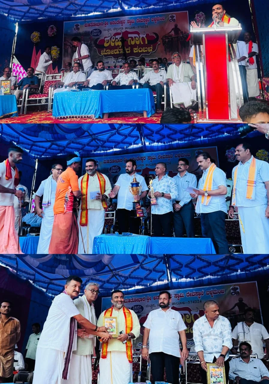 Uncategorizedಶೇಷ-ನಾಗ ಜೋಡುಕರೆ ಕಂಬಳದ ಸಭಾ ಕಾರ್ಯಕ್ರಮದಲ್ಲಿ ಕಿರಣ್ ಚಂದ್ರ ಡಿ. ಪುಷ್ಪಗಿರಿBy TNVOffice - December 8, 2025033FacebookTwitterPinterestWhatsApp ಬಳ್ಳಮಂಜದಲ್ಲಿ ನಡೆದ ಶೇಷ-ನಾಗ ಜೋಡುಕರೆ ಕಂಬಳದ ಸಭಾ ಕಾರ್ಯಕ್ರಮದಲ್ಲಿ ಧಾರ್ಮಿಕ ಮುಖಂಡರು ಶ್ರೀ ಕಿರಣ್ ಚಂದ್ರ ಡಿ. ಪುಷ್ಪಗಿರಿಯವರು ಭಾಗವಹಿಸಿದರು.