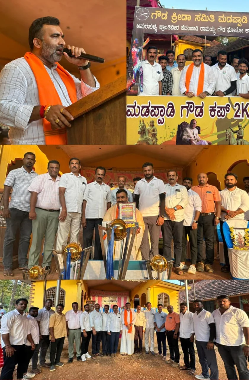 ‘ಸುಳ್ಯ ಗೌಡ ಕ್ರೀಡಾ ಸಮಿತಿ ಮಡಪ್ಪಾಡಿ’ ಇವರ ನೇತೃತ್ವದಲ್ಲಿ ಸುಳ್ಯ ತಾಲ್ಲೂಕಿನ ಮಡಪ್ಪಾಡಿಯಲ್ಲಿ ನಡೆದ “ಕ್ರಿಕೆಟ್ ಪಂದ್ಯಾಟ” ದಲ್ಲಿ ಶ್ರೀ ಕಿರಣ್ ಚಂದ್ರ ಪುಷ್ಪಗಿರಿ ಅವರು ಭಾಗವಹಿಸಿ ಕ್ರೀಡಾಪಟುಗಳಿಗೆ ಶುಭ ಹಾರೈಸಿದರು. ಈ ಸಂದರ್ಭ ಕ್ರೀಡಾ ಸಮಿತಿ ವತಿಯಿಂದ ಪುಷ್ಪಗಿರಿ ಅವರನ್ನು ಸನ್ಮಾನಿಸಿ ಗೌರವಿಸಿದರು