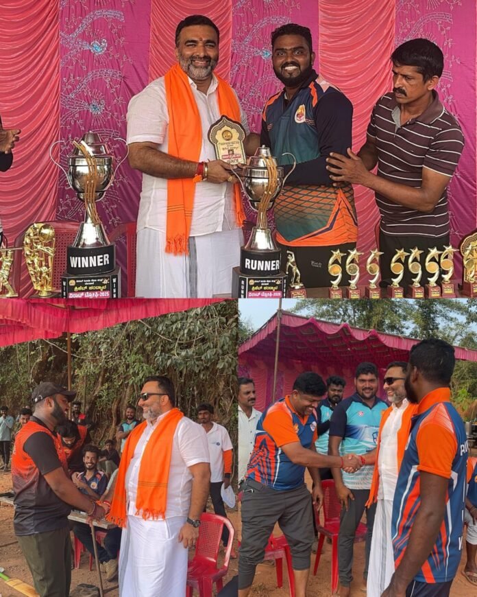 Uncategorizedಕ್ರಿಕೆಟ್ ಪಂದ್ಯಾಟ ಉದ್ಘಾಟನೆಗೆ ಕಿರಣ್ ಚಂದ್ರ ಪುಷ್ಪಗಿರಿಯವರ ಶುಭಾಶಯBy TNVOffice - November 17, 2025015FacebookTwitterPinterestWhatsApp “ವಿರಾಟ್ ಹಿಂದೂ ಸೇವಾ ಸಂಘ ಮುಂಡಾಜೆ” ಇದರ ನೇತೃತ್ವದಲ್ಲಿ ಮುಂಡಾಜೆಯಲ್ಲಿ ನಡೆದ ಕ್ರಿಕೆಟ್ ಪಂದ್ಯಾಟದ ಕಾರ್ಯಕ್ರಮದಲ್ಲಿ ಶ್ರೀ ಕಿರಣ್ ಚಂದ್ರ ಡಿ. ಪುಷ್ಪಗಿರಿ ಅವರು ಭಾಗವಹಿಸಿ ಕ್ರೀಡಾಪಟುಗಳಿಗೆ ಶುಭ ಹಾರೈಸಿದರು.
