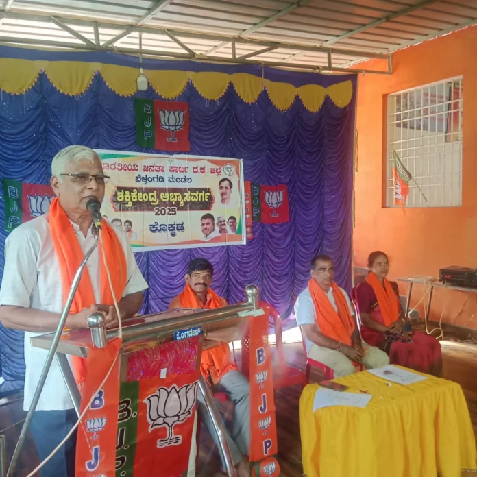 ಕೊಕ್ಕಡ: ಭಾರತೀಯ ಜನತಾ ಪಾರ್ಟಿ ಬೆಳ್ತಂಗಡಿ ಮಂಡಲ ವತಿಯಿಂದ ಪಕ್ಷ ಸಂಘಟನಾ ದೃಷ್ಟಿಯಿಂದ ಕೊಕ್ಕಡ ಶಕ್ತಿ ಕೇಂದ್ರ ಪಂಚಾಯತ್ ಮಟ್ಟದ ಅಭ್ಯಾಸ ವರ್ಗ ಸಭೆ ಸೆ 06 ರಂದು ಶ್ರೀರಾಮ ಭಜನಾ ಮಂದಿರ ಸಭಾಭವನದಲ್ಲಿ ನಡೆಯಿತು. ಕಾರ್ಯಕ್ರಮವನ್ನು ಪಕ್ಷದ ಹಿರಿಯ ಕಾರ್ಯಕರ್ತರಾದ ಬಿಜೆಪಿ ಗ್ರಾಮ ಸಮಿತಿ ಮಾಜಿ ಅಧ್ಯಕ್ಷರು ಹಿರಿಯರಾದ ಸುಂದರ ಭಂಡಾರಿಯವರು ದೀಪ ಬೆಳಗಿಸಿ ಉದ್ಘಾಟಿಸಿದರು. ಶಾಸಕರಾದ ಹರೀಶ್ ಪೂಂಜಾರವರು ಉದ್ಘಾಟನಾ ಭಾಷಣದ ಜೊತೆಗೆ ಪಕ್ಷ ಸಂಘಟನೆ ಮತ್ತು ಕಾರ್ಯಚಟುವಟಿಕೆಯ ಕುರಿತು ವಿಸ್ಕ್ರುತವಾಗಿ ಸಮಾಲೋಚನೆ ನಡೆಸಿದರು. ಕಣಿಯೂರು ಗ್ರಾಮ ಬಿಜೆಪಿ ಶಕ್ತಿ ಕೇಂದ್ರ ಪ್ರಮುಖ್, ಯುವ ವಕೀಲರಾದ ಯತೀಶ್ ಶೆಟ್ಟಿ ಪಣೆಕ್ಕರ, ಬಿಜೆಪಿ ಜಿಲ್ಲಾ ಕಾರ್ಯದರ್ಶಿ ಸೀತಾರಾಮ್ ಬಿ. ಎಸ್. ಬೆಳಾಲು,ಮಾಜಿ ತಾಲೂಕು ಪಂಚಾಯತ್ ಸದಸ್ಯರಾದ ಸುಧಾಕರ ಲಾಯಿಲ, ಧರ್ಮಸ್ಥಳ ಮಹಾಶಕ್ತಿ ಕೇಂದ್ರ ಪ್ರಧಾನ ಕಾರ್ಯದರ್ಶಿ ಗಣೇಶ್ ಹೊಸ್ತೋಟ, ಬೈಠಕ್ ನೀಡಿದರು,ಪಕ್ಷದ ಹಿರಿಯರಾದ ಎಸ್ ಸಿ.ಡಿ.ಸಿ.ಸಿ. ಬ್ಯಾಂಕ್ ನಿರ್ದೇಶಕರಾದ ಕುಶಾಲಪ್ಪ ಗೌಡ ಪೂವಾಜೆ ಸಮಾರೋಪ ಭಾಷಣ ನೆರವೇರಿಸಿದರು, ಈ ಸಂದರ್ಭದಲ್ಲಿ ನಡೆಸಿದರು. ಈ ಸಂದರ್ಭದಲ್ಲಿ ಕೊಕ್ಕಡ ಶಕ್ತಿ ಕೇಂದ್ರ ಪ್ರಮುಖ್ ಪ್ರಶಾಂತ್ ಪೂವಾಜೆ, ಶ್ರೀಮತಿ ಲಕ್ಷ್ಮೀ ಅಡೈ, ರಾಮಣ್ಣ ಗೌಡ ಕೇಚೋಡಿ, ಲೋಕಯ್ಯ ಗೌಡ ಕೆಂಪಮಜಲು, ಧರ್ಮಸ್ಥಳ ಮಹಾಶಕ್ತಿ ಕೇಂದ್ರ ಅಧ್ಯಕ್ಷರಾದ ಹರೀಶ್ ಗೌಡ ಕೊಯಿಲ,ಅಭ್ಯಾವರ್ಗ ಪ್ರಭಾರಿ ಕೊರಗಪ್ಪ ಗೌಡ ಚಾರ್ಮಾಡಿ, ಬಿಜೆಪಿ ಮಂಡಲ ಪ್ರಧಾನ ಕಾರ್ಯದರ್ಶಿ ಪ್ರಶಾಂತ್ ಪಾರೆಂಕಿ,ಕೊಕ್ಕಡ ಪಂಚಾಯತ್ ಅಧ್ಯಕ್ಷೆ ಶ್ರೀಮತಿ ಬೇಬಿ,ಮಂಡಲ ಯುವಮೋರ್ಚಾ ಕಾರ್ಯದರ್ಶಿ ರಂಜು ಕೊಕ್ಕಡ, ಕೊಕ್ಕಡ ಶಕ್ತಿ ಕೇಂದ್ರ ಬೂತ್ ಅಧ್ಯಕ್ಷ, ಕಾರ್ಯದರ್ಶಿಗಳಾದ ಕಿರಣ್ ಬಳ್ತಿಮಾರ್,ರವಿಚಂದ್ರ ಪುಡಿಕೇತ್ತೂರು,ಶಶಿಕುಮಾರ್ ತಿಪ್ಪಮಜಲು, ಶ್ರೀಧರ್ ಬಳಕ್ಕ, ಲಿಂಗಪ್ಪ ಕಡೀರ, ಭಾಸ್ಕರ ಶೆಟ್ಟಿಗಾರ್, ಕಿಶೋರ್ ಪೋಯ್ಯೋಲೆ, ಕೊಕ್ಕಡ ಪಂಚಾಯತ್ ಉಪಾಧ್ಯಕ್ಷರು, ಸದಸ್ಯರುಗಳು,ಸಿ.ಎ. ಬ್ಯಾಂಕ್ ಉಪಾಧ್ಯಕ್ಷರು, ನಿರ್ದೇಶಕರುಗಳು, ಮಿಲ್ಕ್ ಸೊಸೈಟಿ ಪದಾಧಿಕಾರಿಗಳು, ಹಾಗೂ ಪಕ್ಷದ ಅನ್ಯನ್ಯ ಜವಾಬ್ದಾರಿ ಇರುವ ಪ್ರಮುಖರು, ಕಾರ್ಯಕರ್ತರು ಉಪಸ್ಥಿತರಿದ್ದರು. ಶ್ರೀಮತಿ ಪವಿತ್ರ ಸ್ವಾಗತಿಸಿ, ಶ್ರೀಮತಿ ಪ್ರಮೀಳ. ಜಿ. ಬಿಜೆಪಿ ಗೀತೆ ಹಾಡಿದರು, ಕೊಕ್ಕಡ ಪಂಚಾಯತ್ ಮಾಜಿ ಅಧ್ಯಕ್ಷರಾದ ಯೋಗೀಶ್ ಗೌಡ ಆಳಂಬಿಲ ಕಾರ್ಯಕ್ರಮ ನಿರೂಪಿಸಿ, ದೇವದುರ್ಲಭ ಕಾರ್ಯಕರ್ತರು ಸಹಕಾರವಿತ್ತರು.