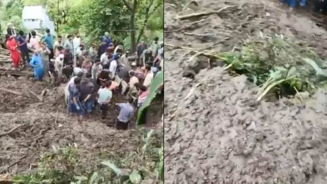 ರಿಯಾಸಿ: ಕಳೆದ ನಾಲ್ಕೈದು ದಿನಗಳಿಂದ ಜಮ್ಮು ಕಾಶ್ಮೀರದಲ್ಲಿ ಭಾರಿ ಮಳೆಯಾಗುತ್ತಿದೆ. ಮೇಘಸ್ಫೋಟ ಸಂಭವಿಸಿದ್ದು, ಎಲ್ಲೆಡೆ ಪ್ರವಾಹದ ಪರಿಸ್ಥಿತಿ ನಿರ್ಮಾಣವಾಗಿದೆ. ರಿಯಾಸಿಯಲ್ಲಿ ಮೇಘಸ್ಫೋಟದ ಬಳಿಕ ಎಲ್ಲೆಡೆ ಭೂಕುಸಿತ ಸಂಭವಿಸಿ ಇಡೀ ಮನೆಯೇ ಕುಸಿದು ಬಿದ್ದು ಒಂದೇ ಮನೆಯ 7 ಮಂದಿ ಪ್ರಾಣ ಕಳೆದುಕೊಂಡಿರುವ ಘಟನೆ ವರದಿಯಾಗಿದೆ.ಭೂಕುಸಿತ ಸಂಭವಿಸಿದಾಗ ಕುಟುಂಬವು ನಿದ್ರಿಸುತ್ತಿತ್ತು ಎಂದು ಮಹೋರ್ ಶಾಸಕ ಮೊಹಮ್ಮದ್ ಖುರ್ಷಿದ್ ಹೇಳಿದ್ದಾರೆ. ಇದರಿಂದಾಗಿ ಇಡೀ ಮನೆ ಕುಸಿದು ನಿವಾಸಿಗಳು ಅವಶೇಷಗಳ ಅಡಿಯಲ್ಲಿ ಹೂತುಹೋಗಿದ್ದಾರೆ.ಗ್ರಾಮಸ್ಥರು ತ್ವರಿತವಾಗಿ ರಕ್ಷಣಾ ಕಾರ್ಯಾಚರಣೆ ನಡೆಸಿ ಏಳು ಶವಗಳನ್ನು ಹೊರತೆಗೆದಿದ್ದಾರೆ.
