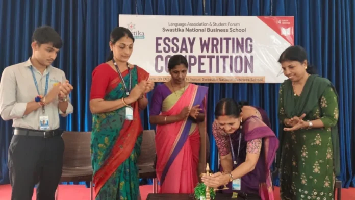 ಸ್ವಸ್ತಿಕ ನ್ಯಾಷನಲ್ ಬಿಸಿನೆಸ್ ಸ್ಕೂಲ್ನ ಭಾಷಾ ಸಂಘ ಮತ್ತು ವಿದ್ಯಾರ್ಥಿ ಸಂಘವು 2025 ಅಕ್ಟೋಬರ್ 9ರಂದು 2025-26ನೇ ಸಾಲಿನ ಉದ್ಘಾಟನಾ ಕಾರ್ಯಕ್ರಮ ಮತ್ತು ಪ್ರಬಂಧ ಬರಹ ಸ್ಪರ್ಧೆಯನ್ನು ಆಯೋಜಿಸಿತು. ಕಾರ್ಯಕ್ರಮವು ಸೆಮಿನಾರ್ ಹಾಲ್ನಲ್ಲಿ ಯಶಸ್ವಿಯಾಗಿ ನಡೆಯಿತು.
