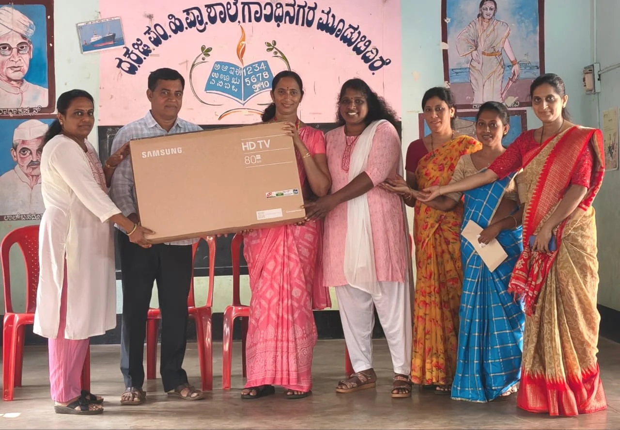 ಮೂಡುಬಿದಿರೆ : ದಕ್ಷಿಣ ಕನ್ನಡ ಜಿಲ್ಲಾ ಪಂಚಾಯತ್ ಹಿರಿಯ ಪ್ರಾಥಮಿಕ ಶಾಲೆ, ಗಾಂಧಿನಗರಕ್ಕೆ ಜಯಾನಂದ ಬಂಗೇರ ಹಾಗೂ ಆಶಾ ದಂಪತಿ ಸ್ಮಾರ್ಟ್ ಟಿವಿಯನ್ನು ಕೊಡುಗೆಯಾಗಿ ನೀಡಿದರು.