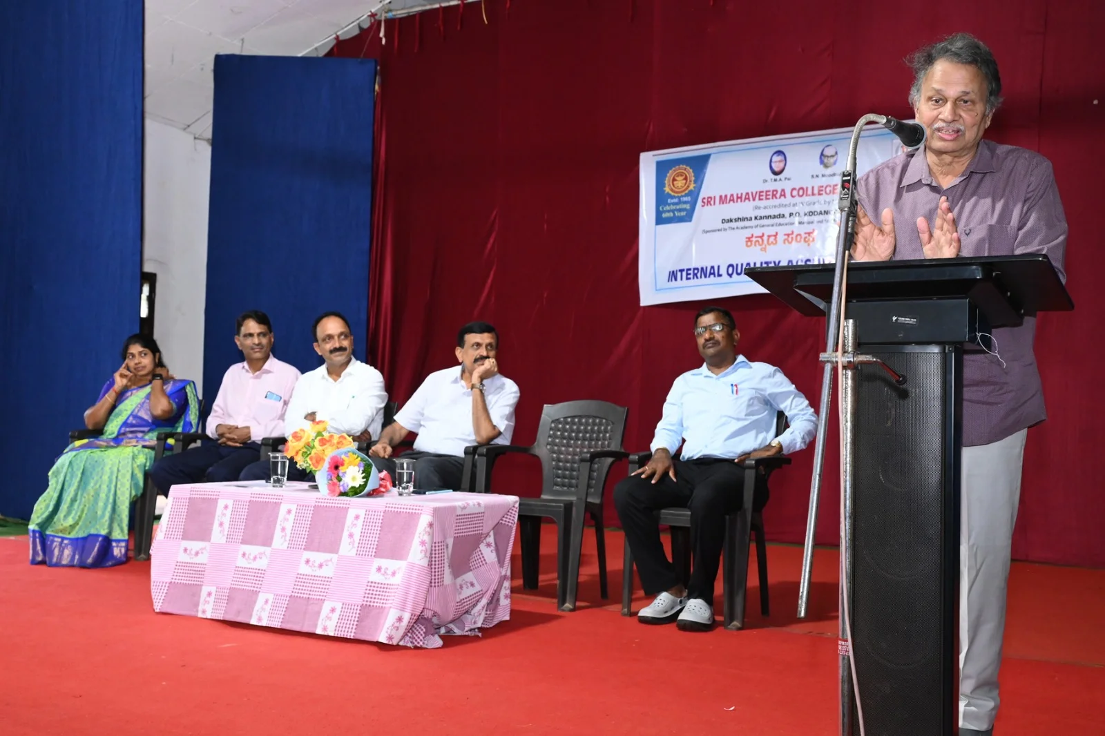 ಶ್ರೀ ಮಹಾವೀರ ಕಾಲೇಜು, ಮೂಡುಬಿದಿರೆ ಇಲ್ಲಿನ ಕನ್ನಡ ವಿಭಾಗದ ಕನ್ನಡ ಸಂಘ ಮತ್ತುಆಂತರಿಕ ಗುಣಮಟ್ಟ ಖಾತರಿ ಕೋಶಗಳ ಸಹಯೋಗದೊಂದಿಗೆ ದಿನಾಂಕ 13-8-2025 ರಂದು ವಿಶೇಷ ಉಪನ್ಯಾಸಕಾರ್ಯಕ್ರಮವನ್ನು ಹಮ್ಮಿಕೊಳ್ಳಲಾಗಿತ್ತು. ಸಂಪನ್ಮೂಲ ವ್ಯಕ್ತಿಯಾಗಿ ಬಂಡಾಯ ಸಾಹಿತಿ, ನಾಡೋಜಡಾ.ಬರಗೂರುರಾಮಚಂದ್ರಪ್ಪ ಭಾಗವಸಿದ್ದರು. ವಿದ್ಯಾರ್ಥಿಗಳನ್ನು ಉದ್ದೇಶಿಸಿ ಮಾತನಾಡುತ್ತಾ“ಇಂದು ಶಿಕ್ಷಣ ಮತ್ತುಉದ್ಯಮಕ್ಕೆ ಸಮಾನ ಸಂಬAಧಕಲ್ಪಿಸಲಾಗುತ್ತಿದೆಆದ್ದರಿAದ ಮೂಲ ವಿಜ್ಞಾನ, ಮಾನವಿಕ ವಿಚಾರಗಳನ್ನು ಅಧ್ಯಯನ ಮಾಡುವವರ ಸಂಖ್ಯೆ ಇಳಿಮುಖವಾಗುತ್ತಿದೆ. ಶಿಕ್ಷಣದ ಬದುಕನ್ನು ಲಾಭ ನಷ್ಟಗಳ ನೆಲೆಯಲ್ಲಿ ನೋಡುವುದಲ್ಲಅದು ವ್ಯಕ್ತಿಯೊಳಗಿನ ಮಾನವೀಯತೆ ಮತ್ತು ಮೌಲ್ಯಗಳು ಕಡಿಮೆಯಾಗದಂತೆತಡೆಯುವುದೇಅದರಉದ್ದೇಶವಾಗಿವಾಗಿದ್ದು ವಿದ್ಯೆ ಪಡೆಯುವ ವ್ಯಕ್ತಿಯೊಳಗಿನ ಮೃಗತ್ವವನ್ನುಕೊಂದುಅವನನ್ನು ಮನುಷ್ಯನನ್ನಾಗಿಸಲಿ”ಎಂದರು.ಮಾತನ್ನು ಮುಂದುವರೆಸುತ್ತಾ, ಎತ್ತಿನಗಾಡಿಯಚಕ್ರವನ್ನುಕಂಡು ಹಿಡಿದ ದಿನವೇ ತಂತ್ರಜ್ಞಾನರೂಢಿಗೆ ಬಂತು.ಆದರೆಅದೇತAತ್ರಜ್ಞಾನದ ಬಳಕೆ ಅತಿಯಾದರೆಅದು ಮನುಷ್ಯನ ಮನಸ್ಸಿನ ವಿರೋಧಿಯಾಗುತ್ತದೆ.ತಂತ್ರಜ್ಞಾನದ ಭರಾಟೆಯಲ್ಲಿತತ್ವಜ್ಞಾನ, ವಿಜ್ಞಾನಗಳು ಮರೆಯಾಗಿವೆ. ಕಲಾ, ವಿಜ್ಞಾನ, ವಾಣಿಜ್ಯ ಕ್ಷೇತ್ರಗಳಿಗೆ ಸೇರಿದ ಸರ್ವರ ಸಮತೋಲನ ಇದ್ದಲ್ಲಿ ಸಾಮಾಜಿಕ ವ್ಯವಸ್ಥೆಚೆನ್ನಾಗಿರುತ್ತದೆಎಂದರು. ತಮ್ಮ ಸಾಹಿತ್ಯರಚನೆಗೆ ಸ್ಪೂರ್ತಿ ನೀಡಿದ ಗುರುಗಳನ್ನು ನೆನೆದರು.ಪ್ರಕೃತಿಯಲ್ಲಿ ಶ್ರೀಗಂಧವೂ ಮುಖ್ಯವೇಜಾಲಿಯ ಮರವೂ ಮುಖ್ಯವೇ.ಪ್ರಕೃತಿಯಲ್ಲಿಇಲ್ಲದಅಸಮಾನತೆ ಮನುಷ್ಯ ಪ್ರಪಂಚದಲ್ಲಿದೆಇದನ್ನು ಹೋಗಲಾಡಿಸಬೇಕುಎಂದು ತಿಳಿ ಹೇಳಿದರು.